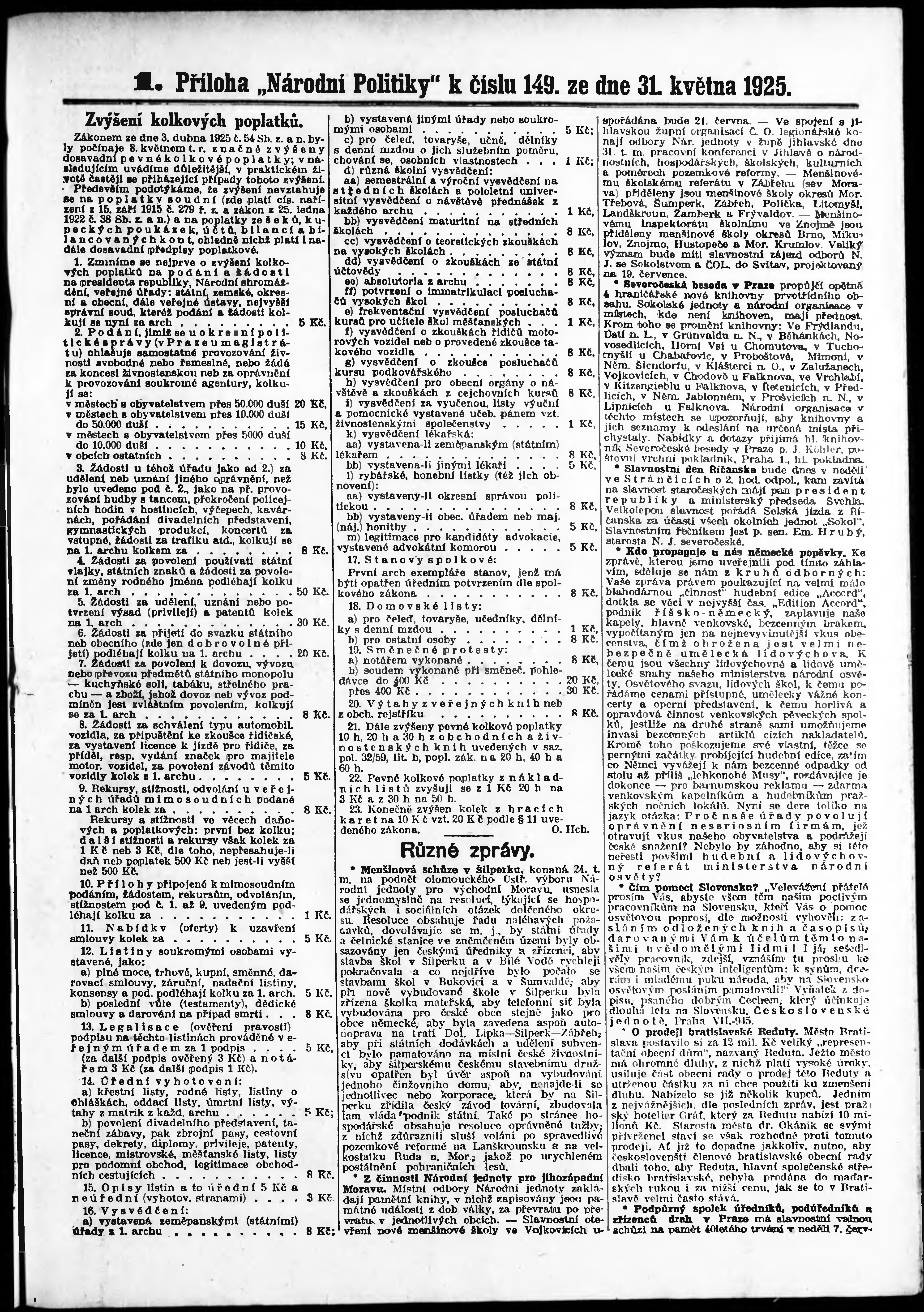 * Datum vydání výtisku: 31.5.1925 Číslo výtisku: 149 Typ výtisku: příloha Poznámky k výtisku: 1. příloha;