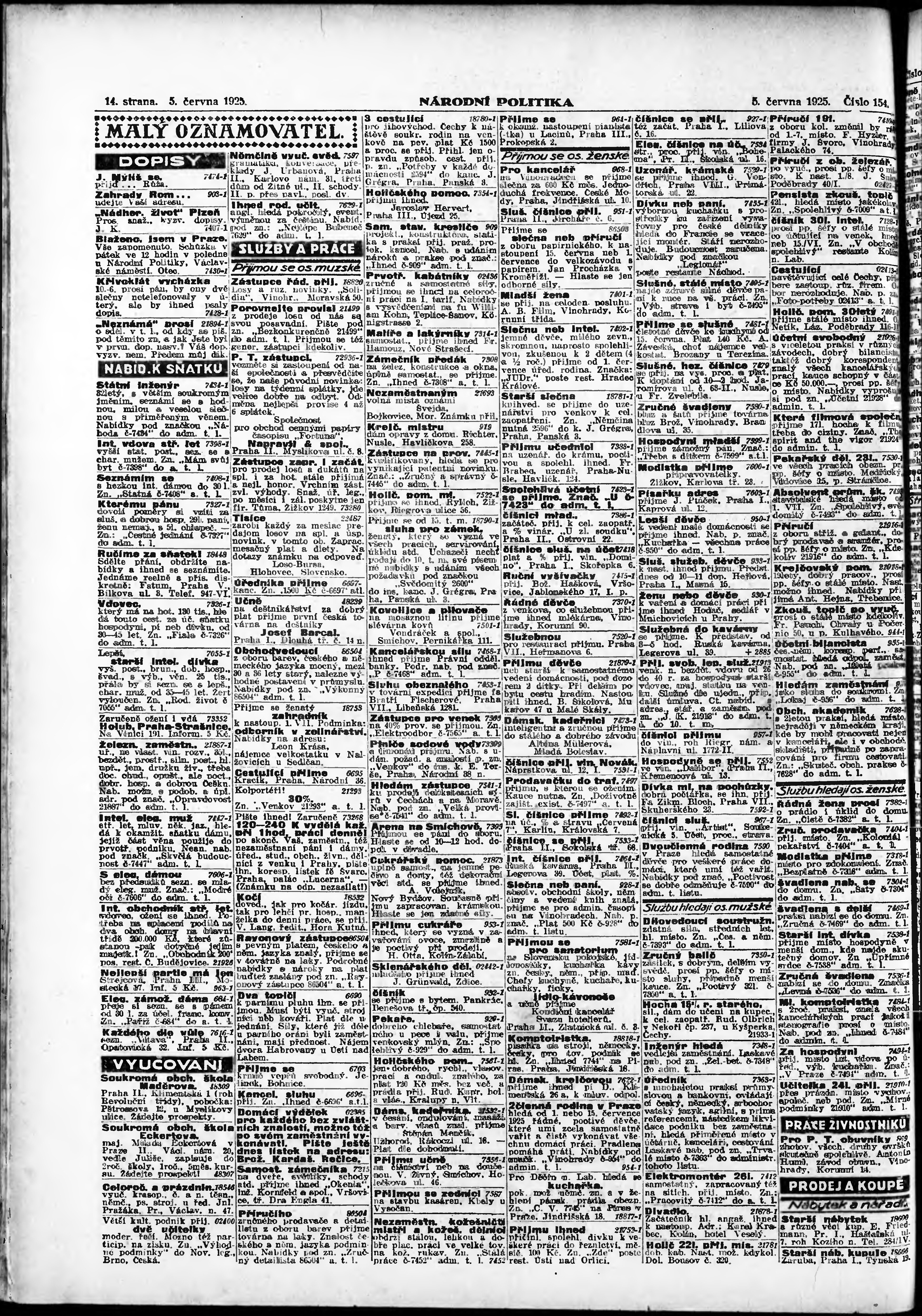 * Datum vydání výtisku: 5.6.1925 Číslo výtisku: 154 Poznámky k výtisku: ranní vydání; vydání pro Prahu;