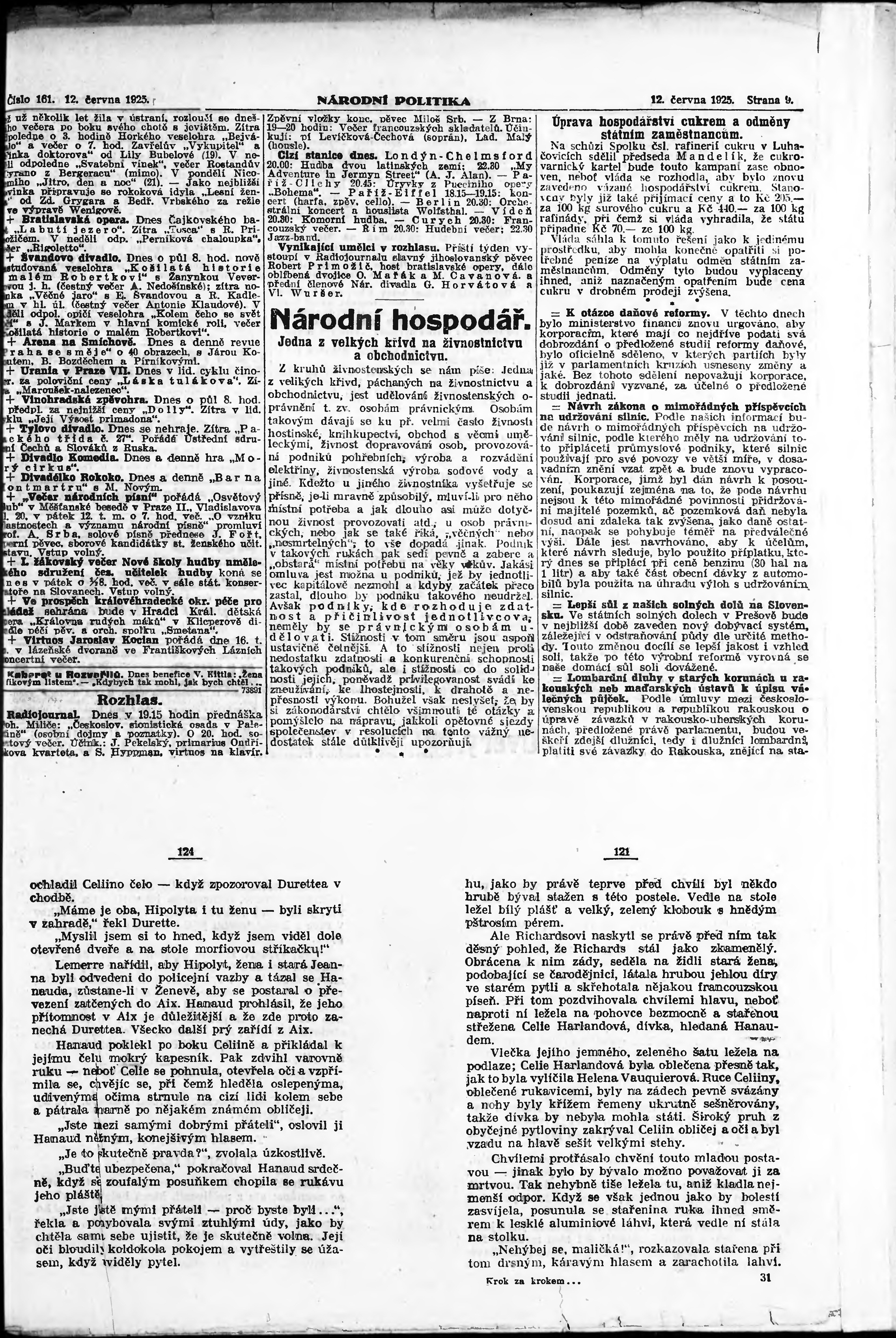 * Datum vydání výtisku: 12.6.1925 Číslo výtisku: 161 Poznámky k výtisku: ranní vydání; vydání pro Prahu;