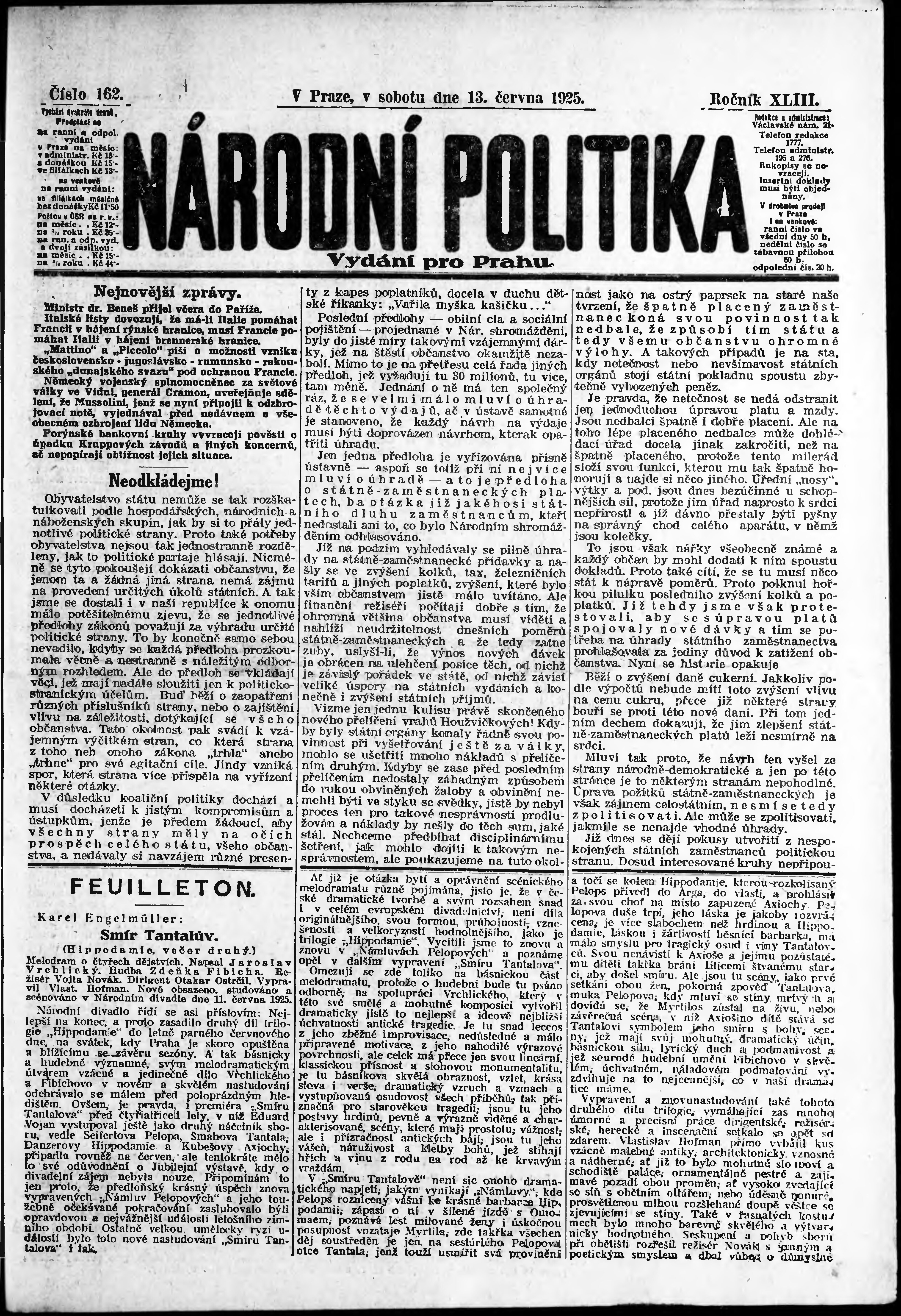 ranní vydání; vydání pro Prahu;