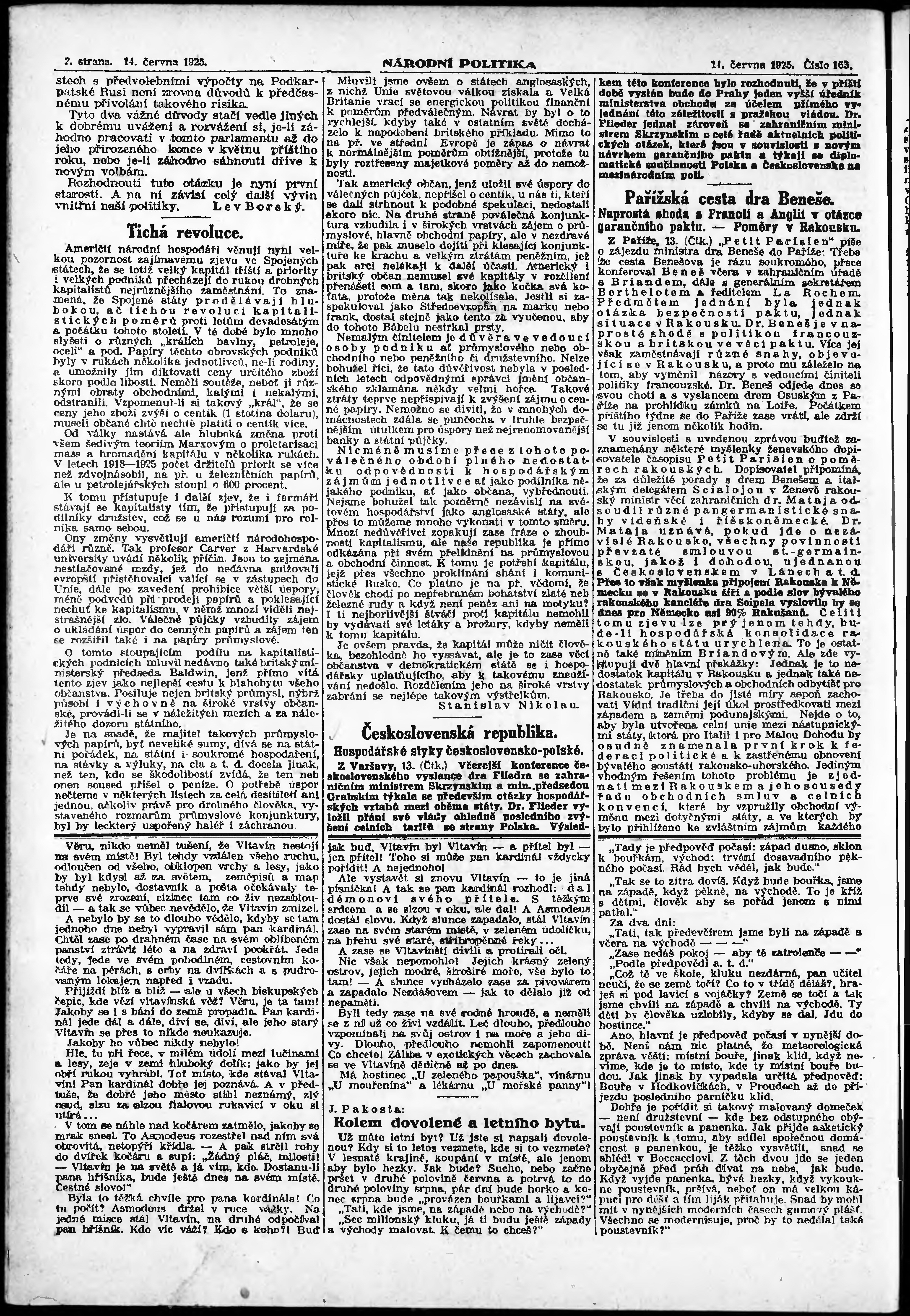 * Datum vydání výtisku: 14.6.1925 Číslo výtisku: 163 Poznámky k výtisku: ranní vydání;