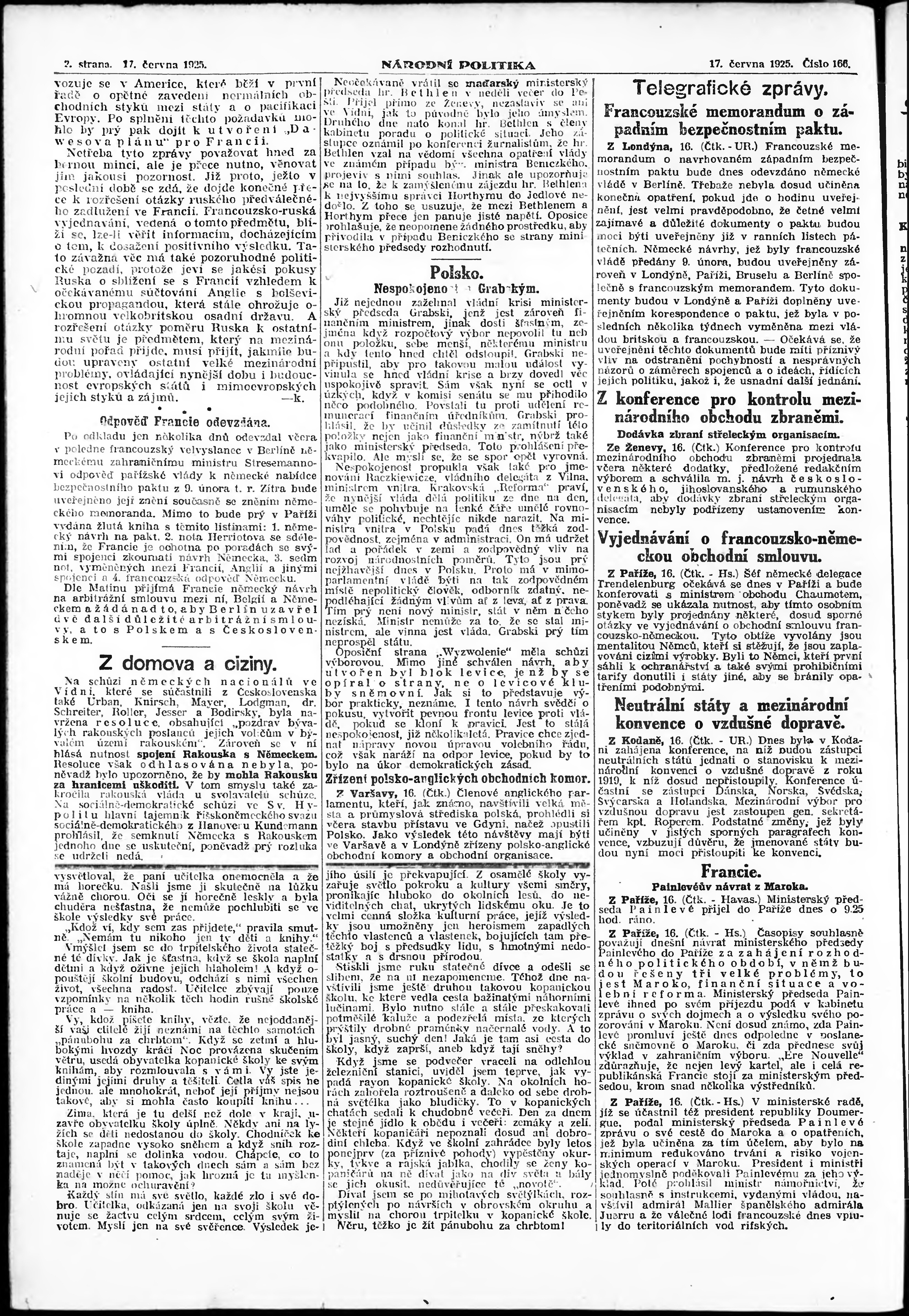 * Datum vydání výtisku: 17.6.1925 Číslo výtisku: 166 Poznámky k výtisku: ranní vydání; vydání pro Prahu;