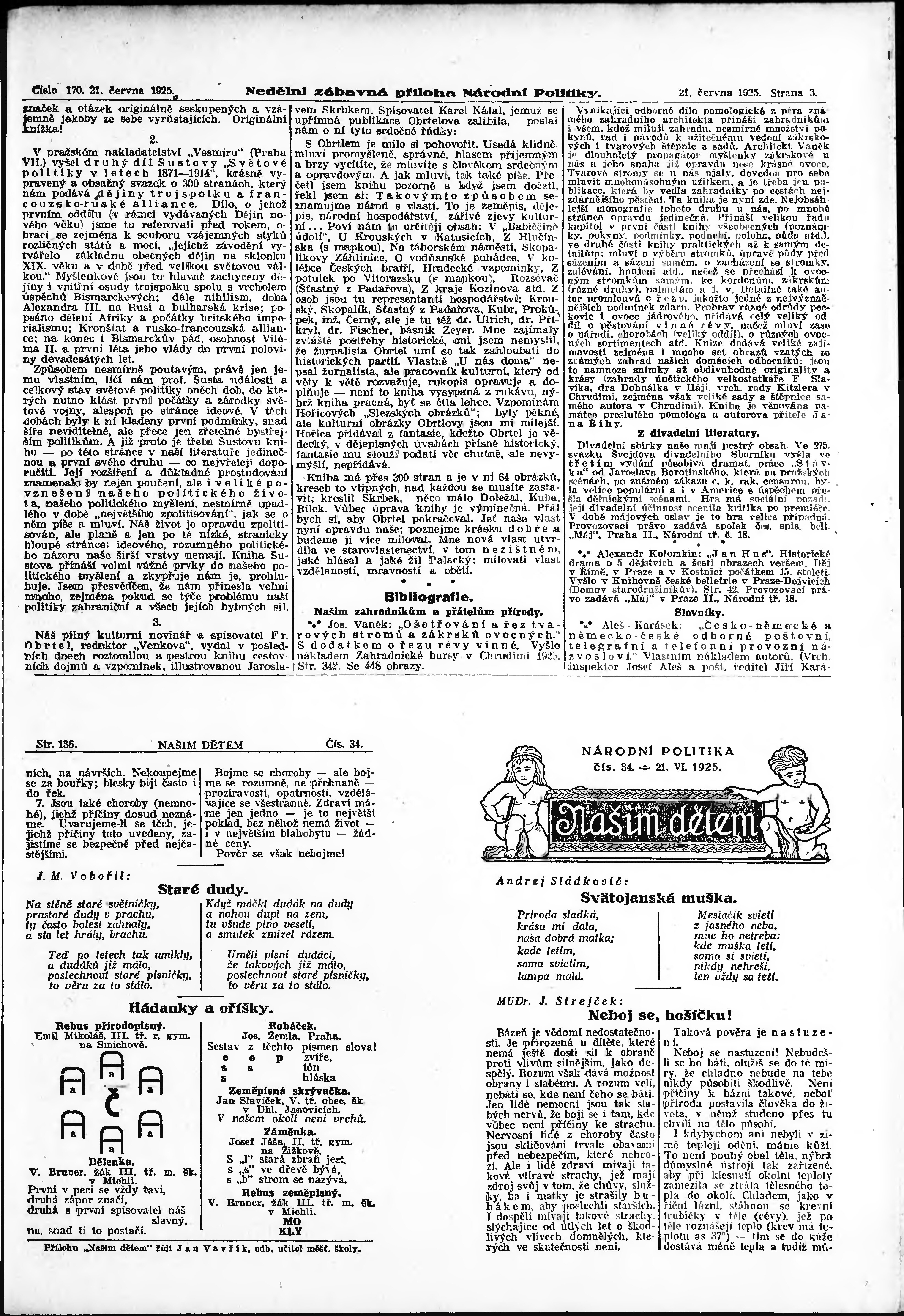 * Datum vydání výtisku: 21.6.1925 Číslo výtisku: 170 Typ výtisku: příloha