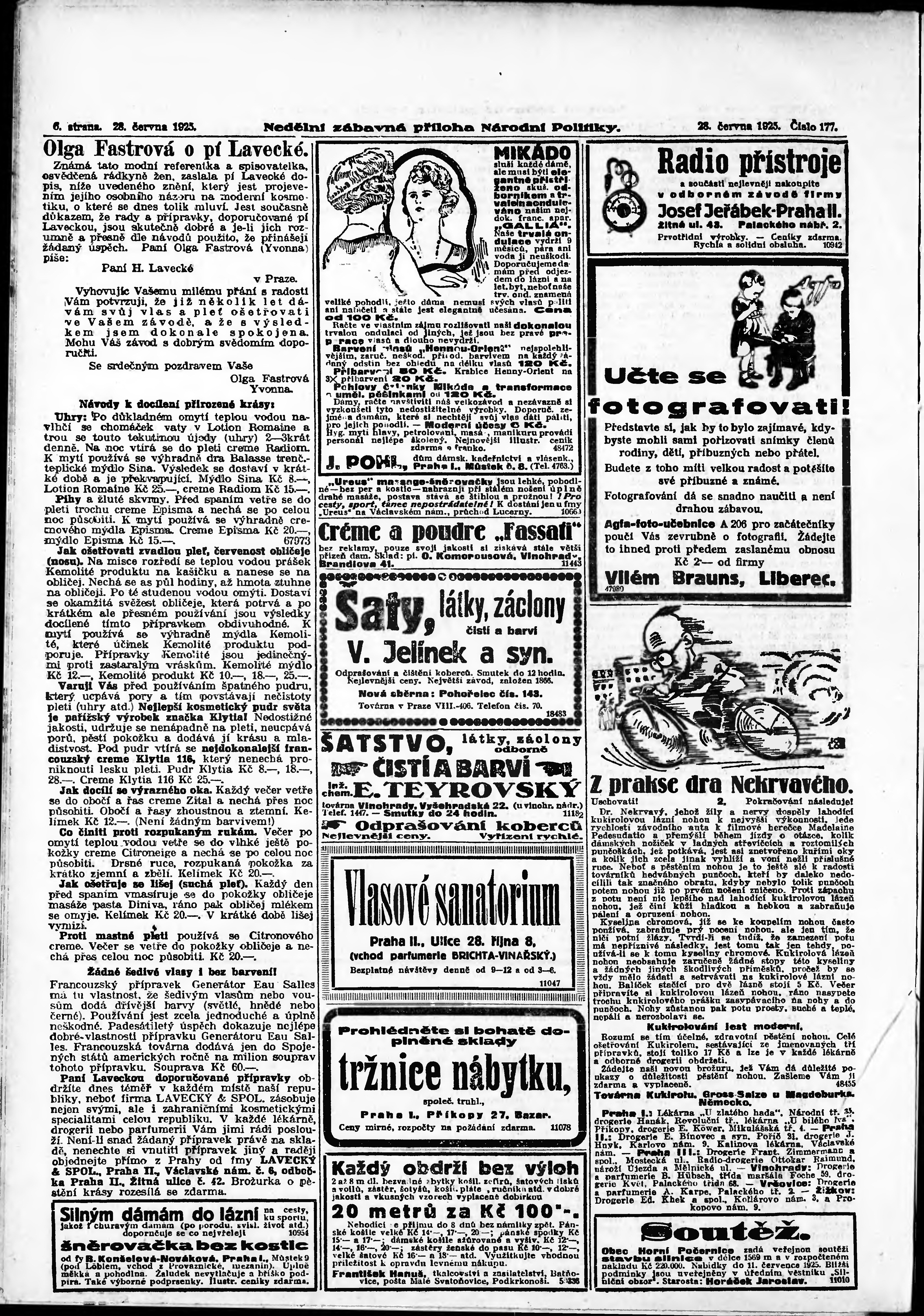 * Datum vydání výtisku: 28.6.1925 Číslo výtisku: 177 Typ výtisku: příloha