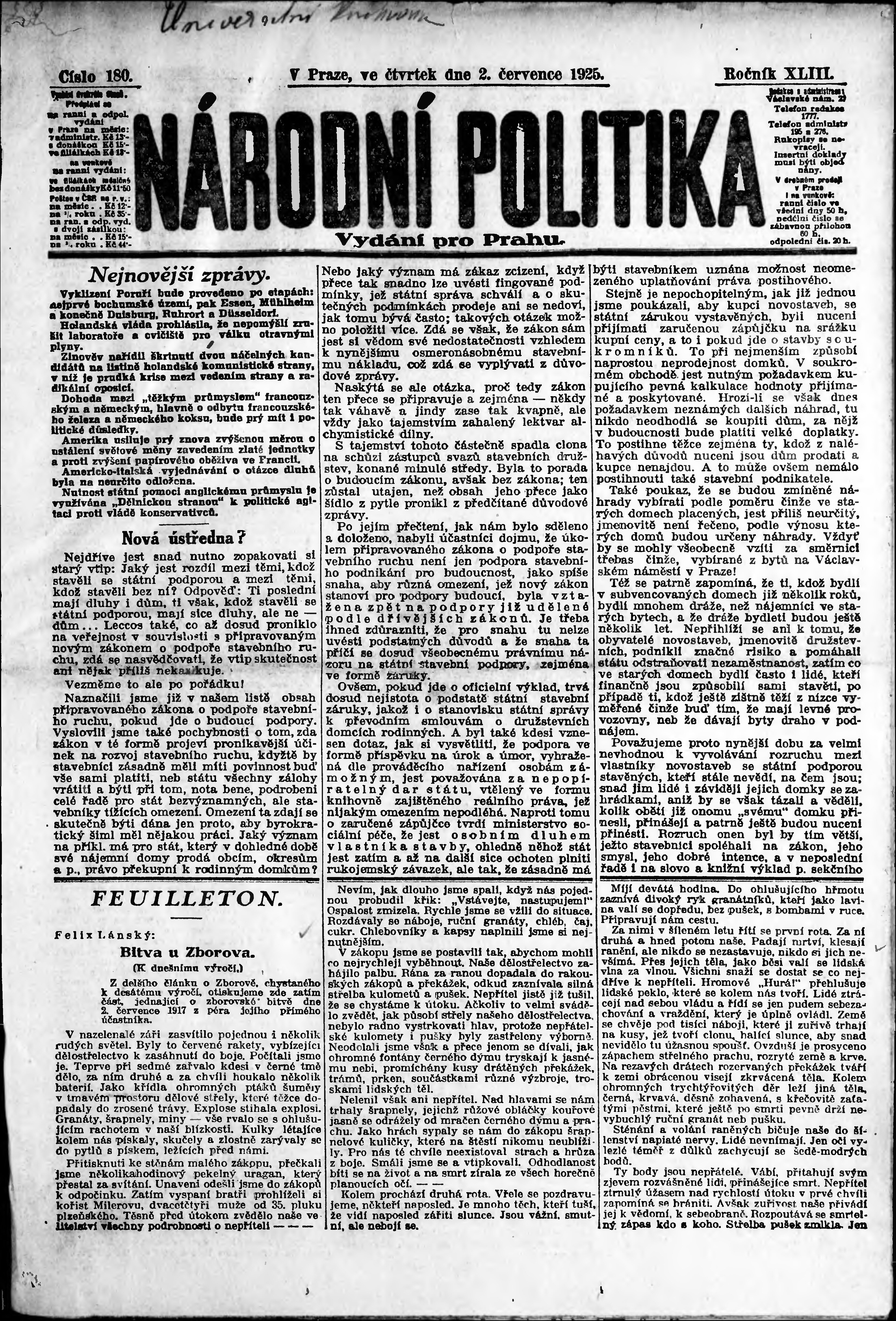 ranní vydání; vydání pro Prahu;