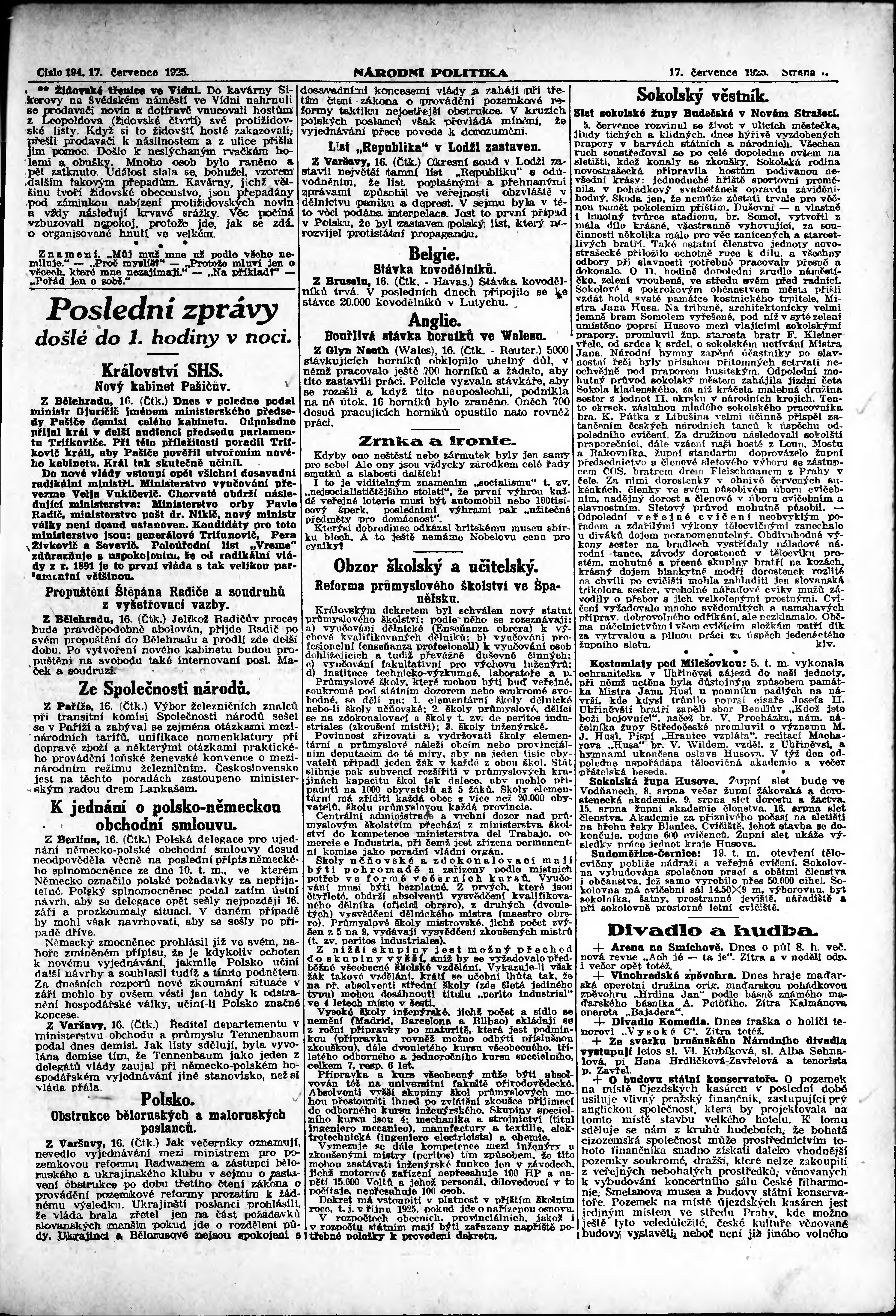 * Datum vydání výtisku: 17.7.1925 Číslo výtisku: 194 Poznámky k výtisku: ranní vydání; vydání pro Prahu;