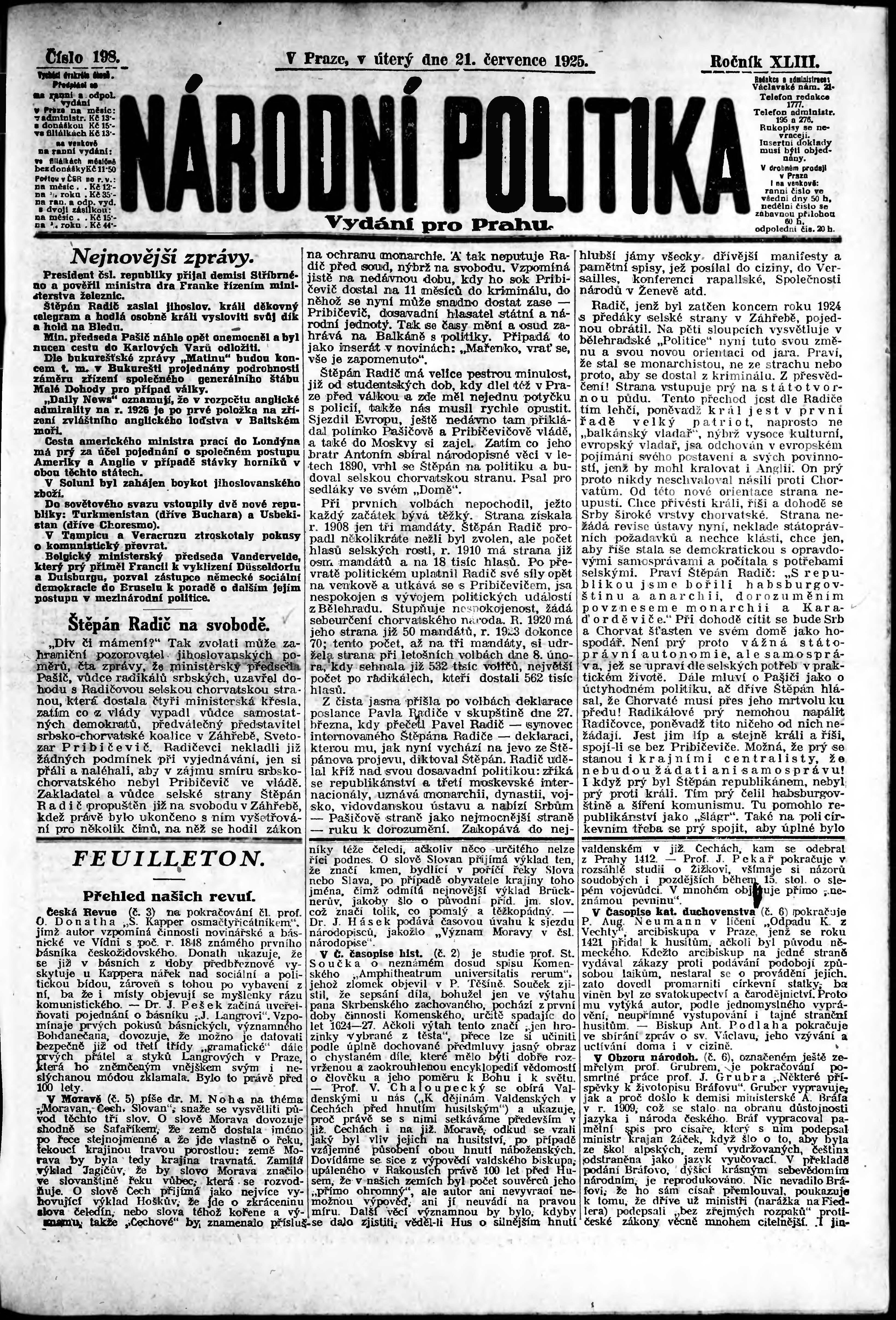 ranní vydání; vydání pro Prahu;