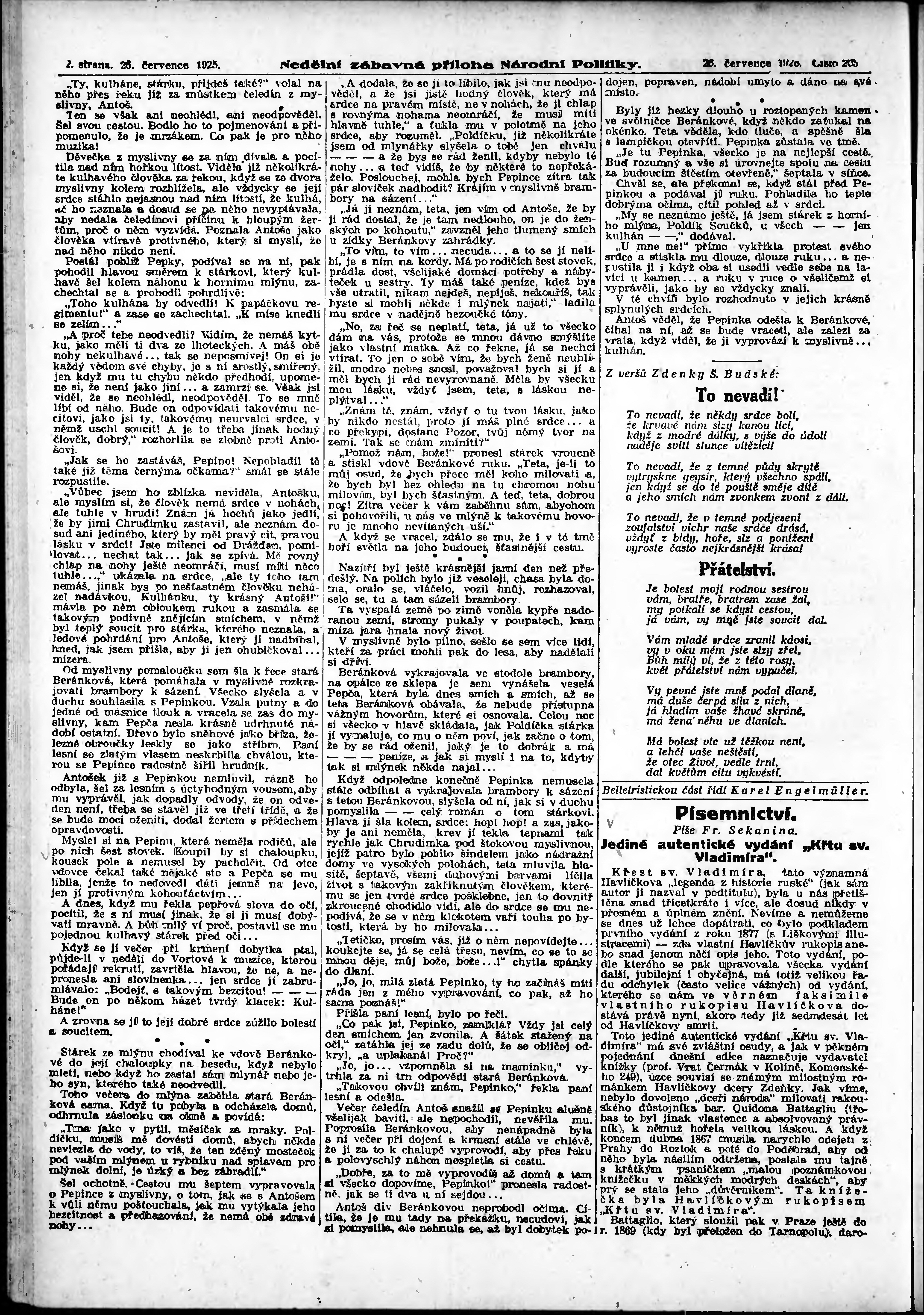 * Datum vydání výtisku: 26.7.1925 Číslo výtisku: 203 Typ výtisku: příloha