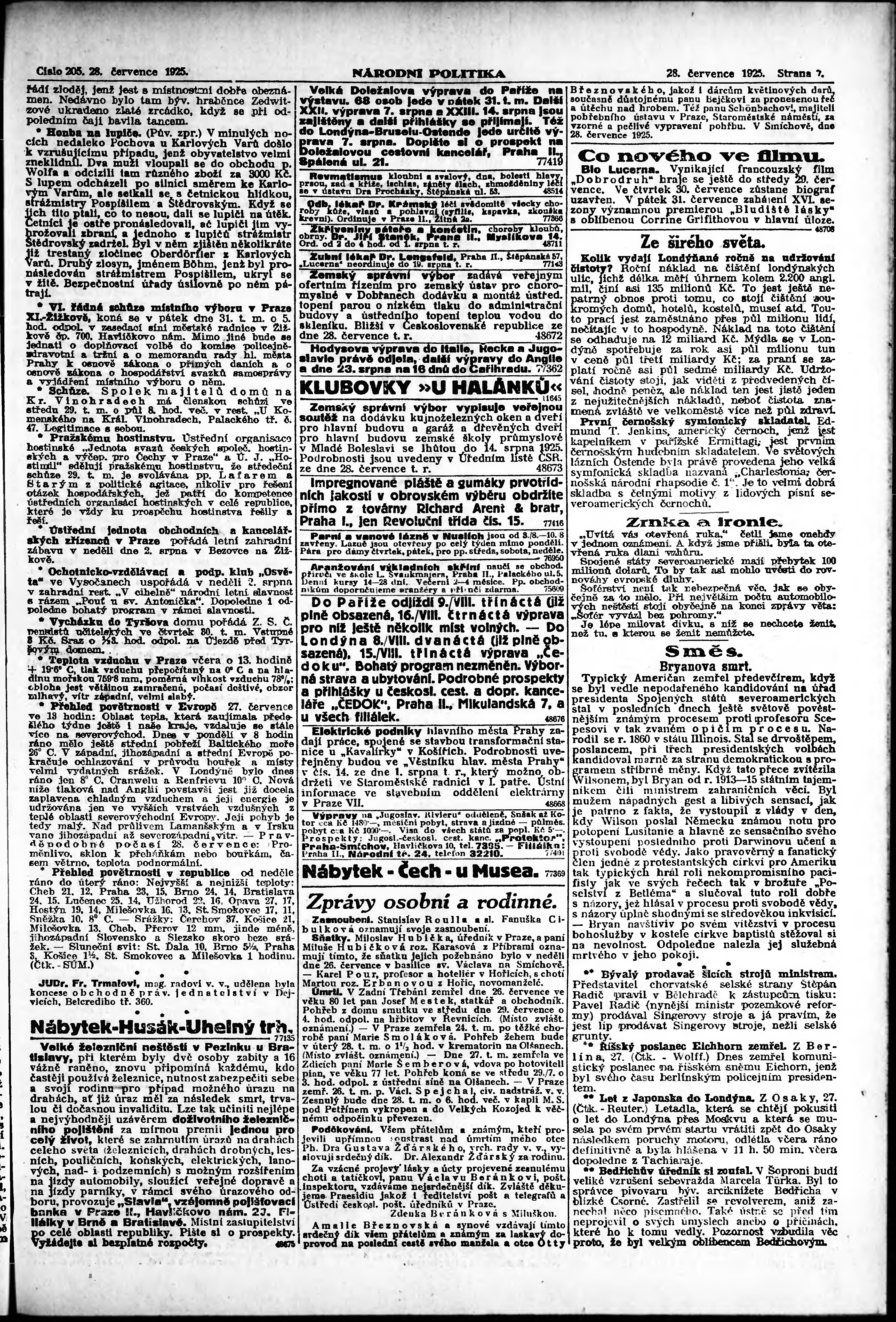 * Datum vydání výtisku: 28.7.1925 Číslo výtisku: 205 Poznámky k výtisku: ranní vydání; vydání pro Prahu;
