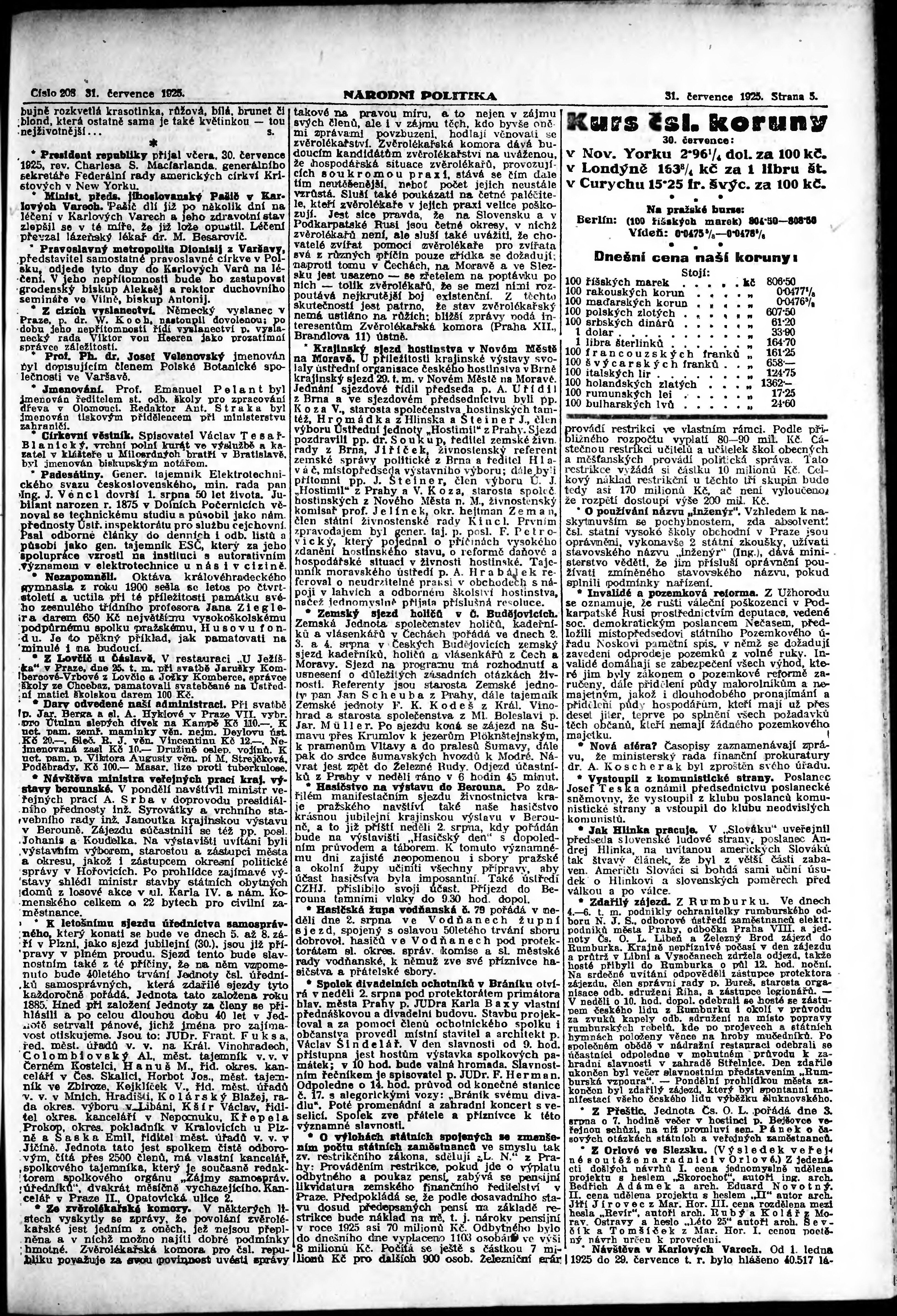 * Datum vydání výtisku: 31.7.1925 Číslo výtisku: 208 Poznámky k výtisku: ranní vydání; vydání pro Prahu;
