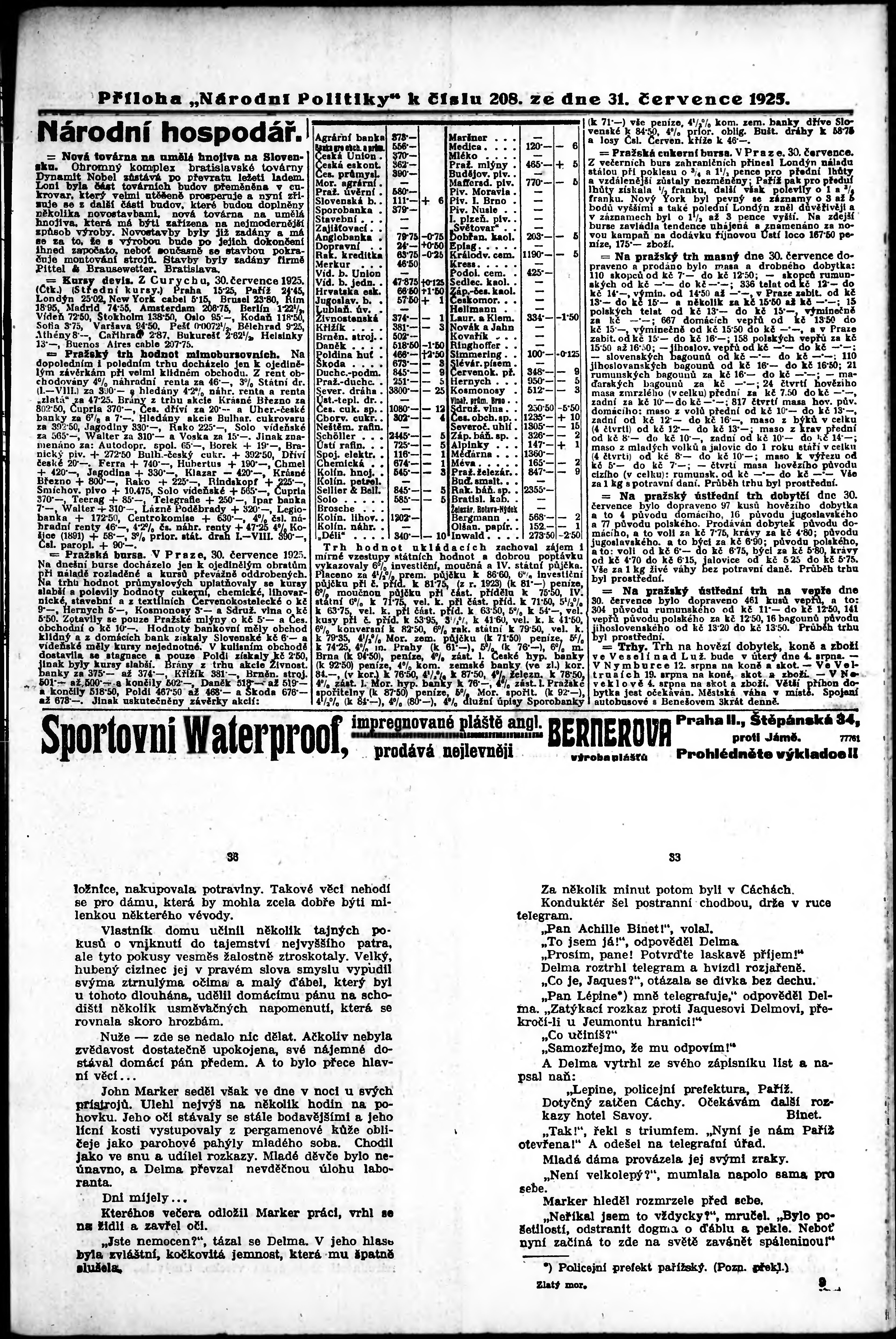 * Datum vydání výtisku: 31.7.1925 Číslo výtisku: 208 Typ výtisku: příloha
