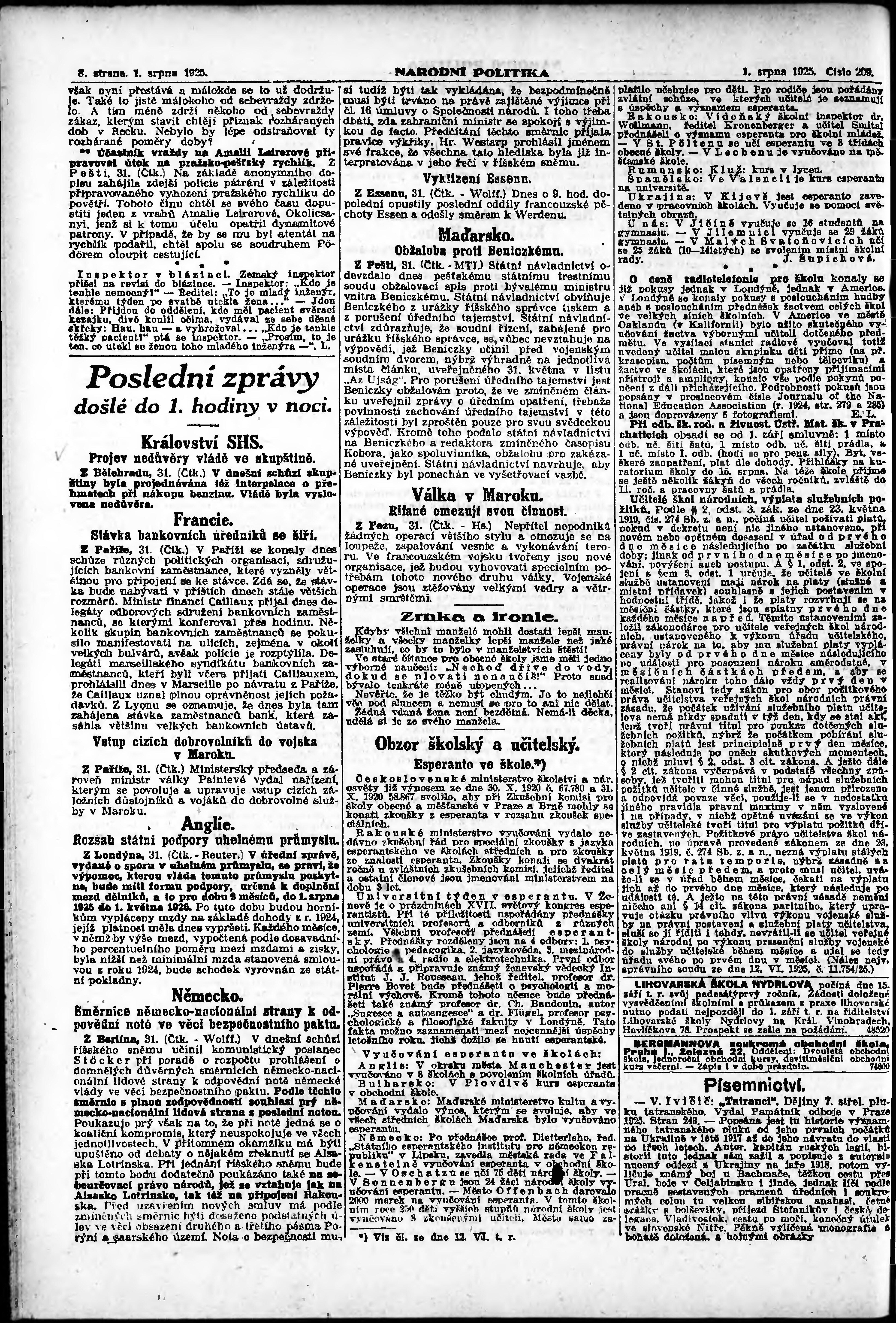 * Datum vydání výtisku: 1.8.1925 Číslo výtisku: 209 Poznámky k výtisku: ranní vydání; vydání pro Prahu;
