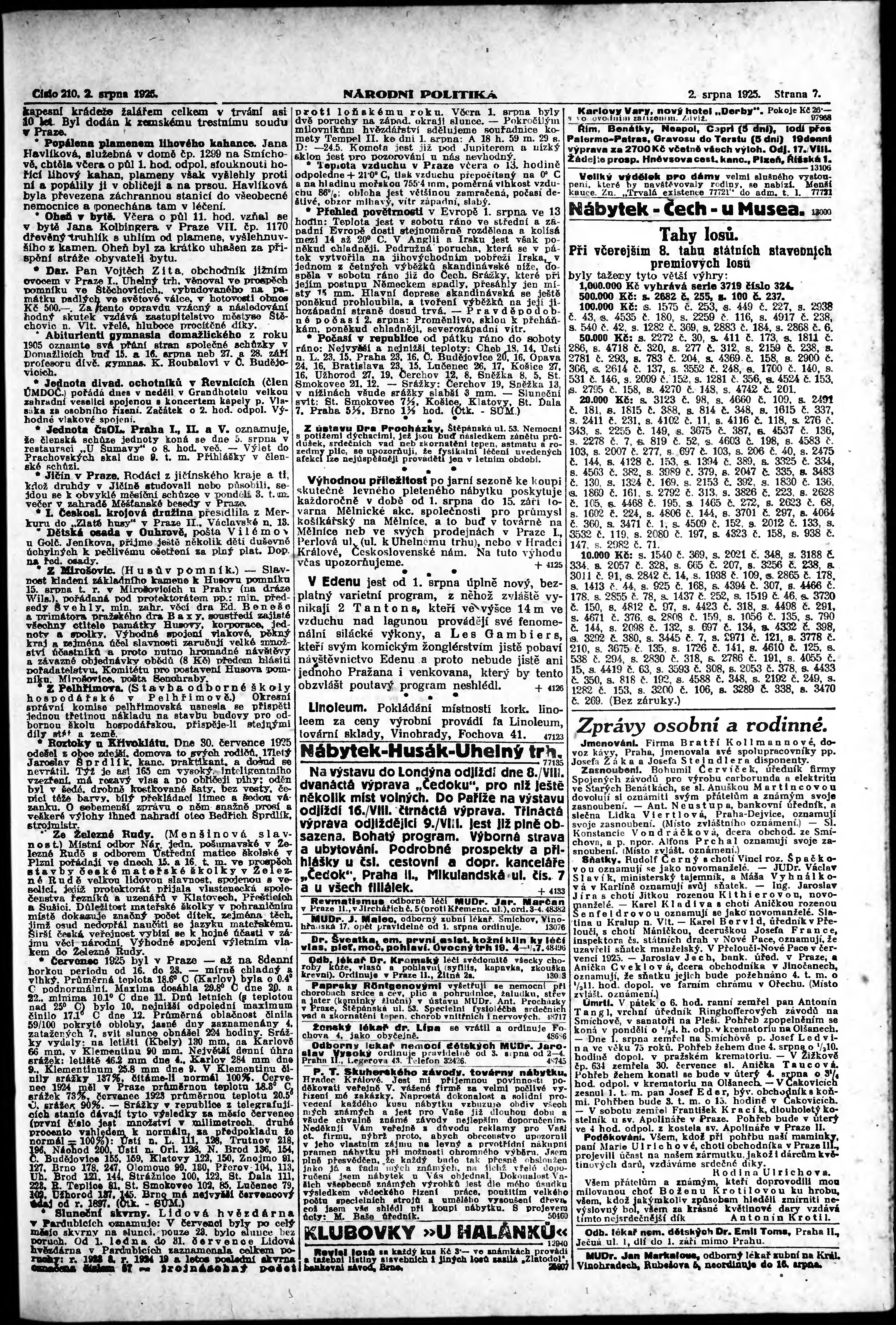 * Datum vydání výtisku: 2.8.1925 Číslo výtisku: 210 Poznámky k výtisku: ranní vydání;