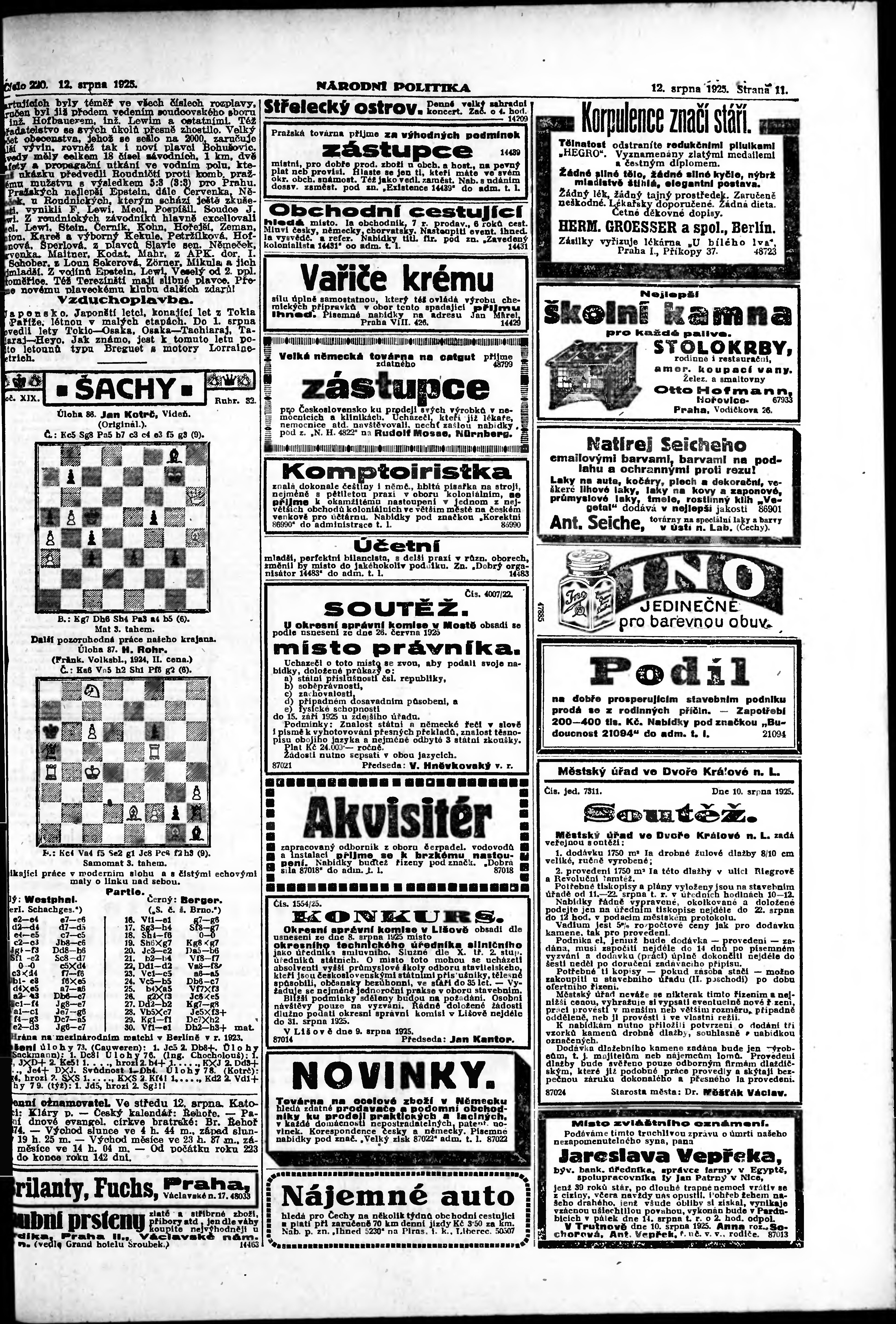 ranní vydání; vydání pro Prahu;