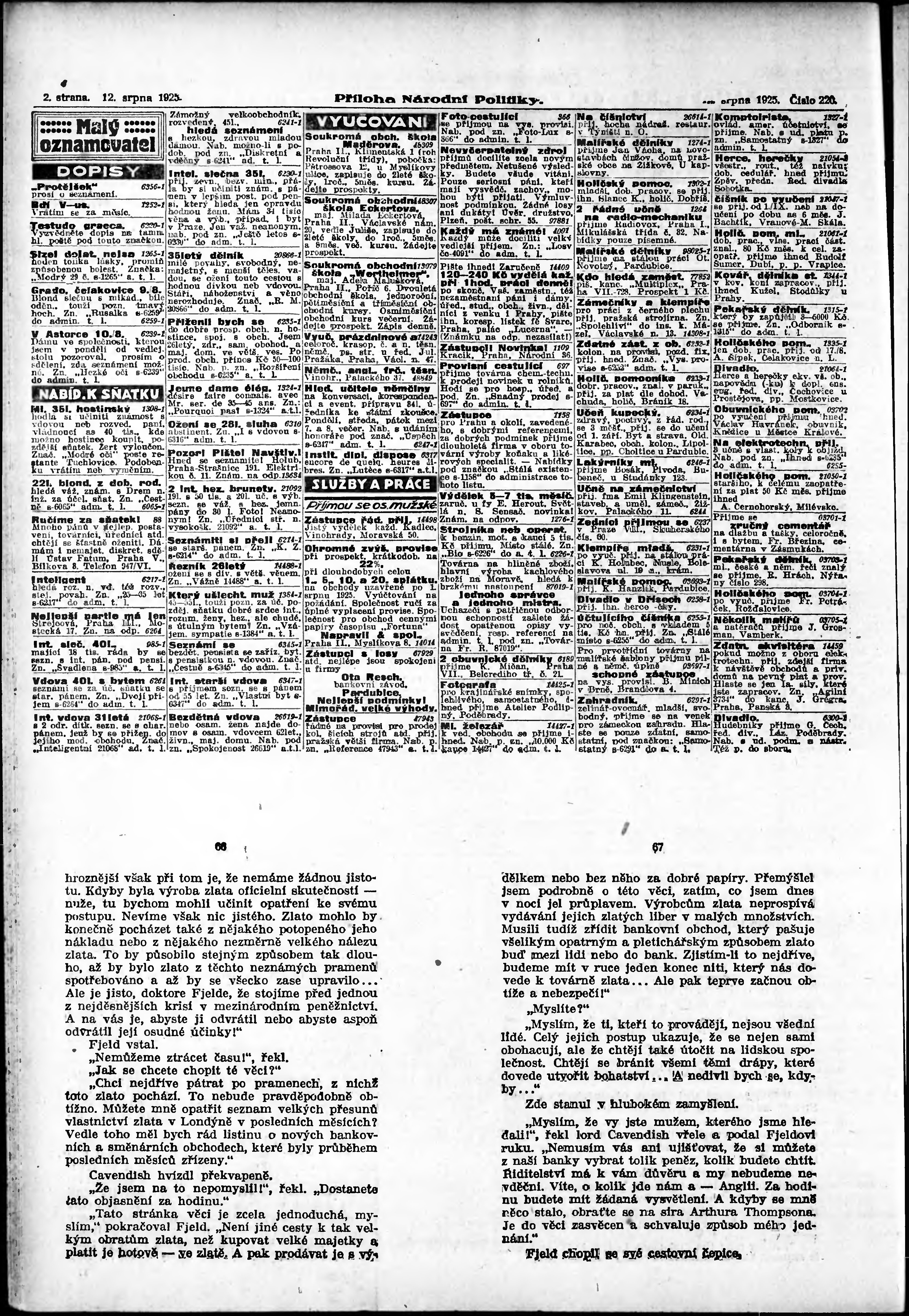 * Datum vydání výtisku: 12.8.1925 Číslo výtisku: 220 Typ výtisku: příloha