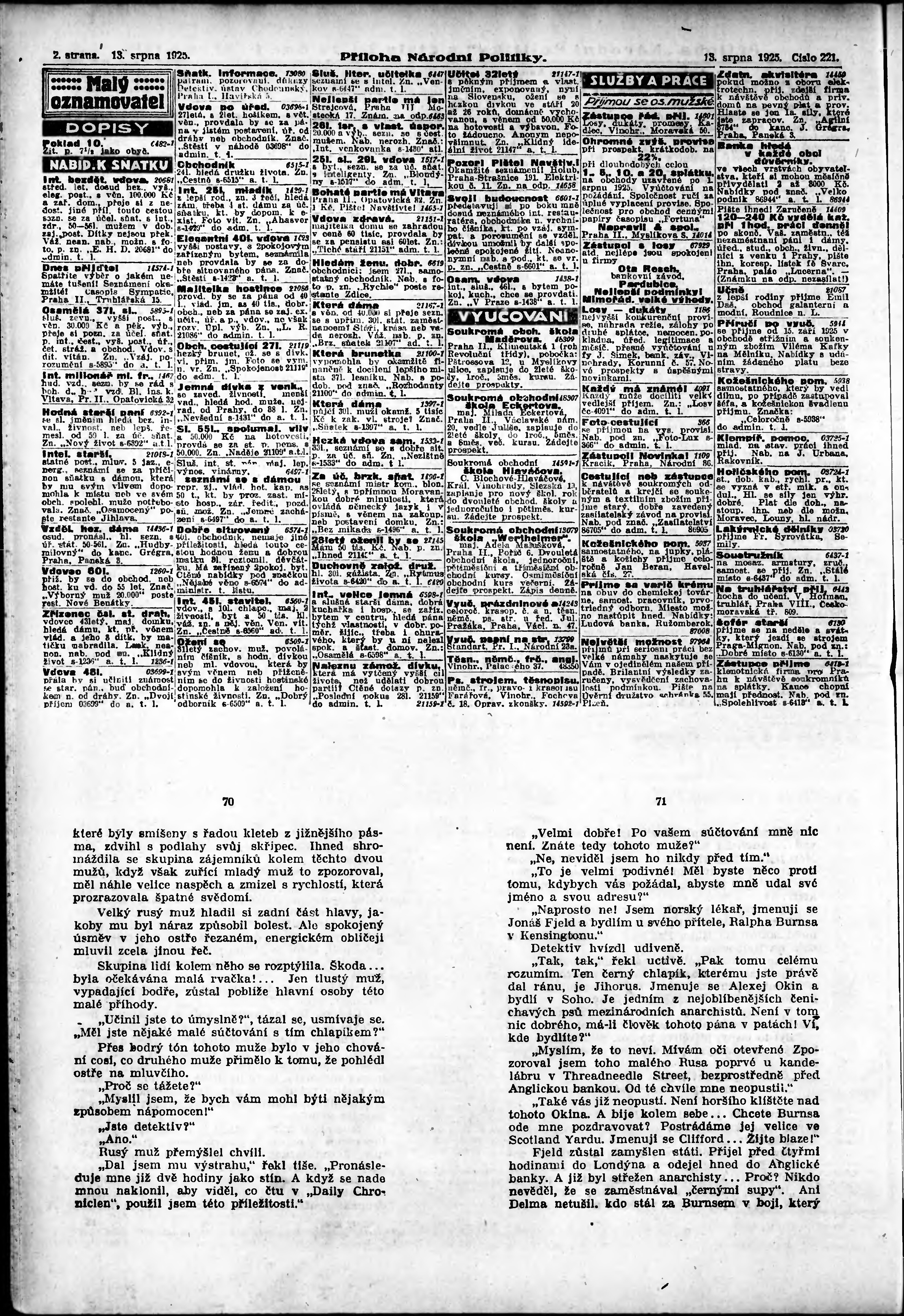 * Datum vydání výtisku: 13.8.1925 Číslo výtisku: 221 Typ výtisku: příloha