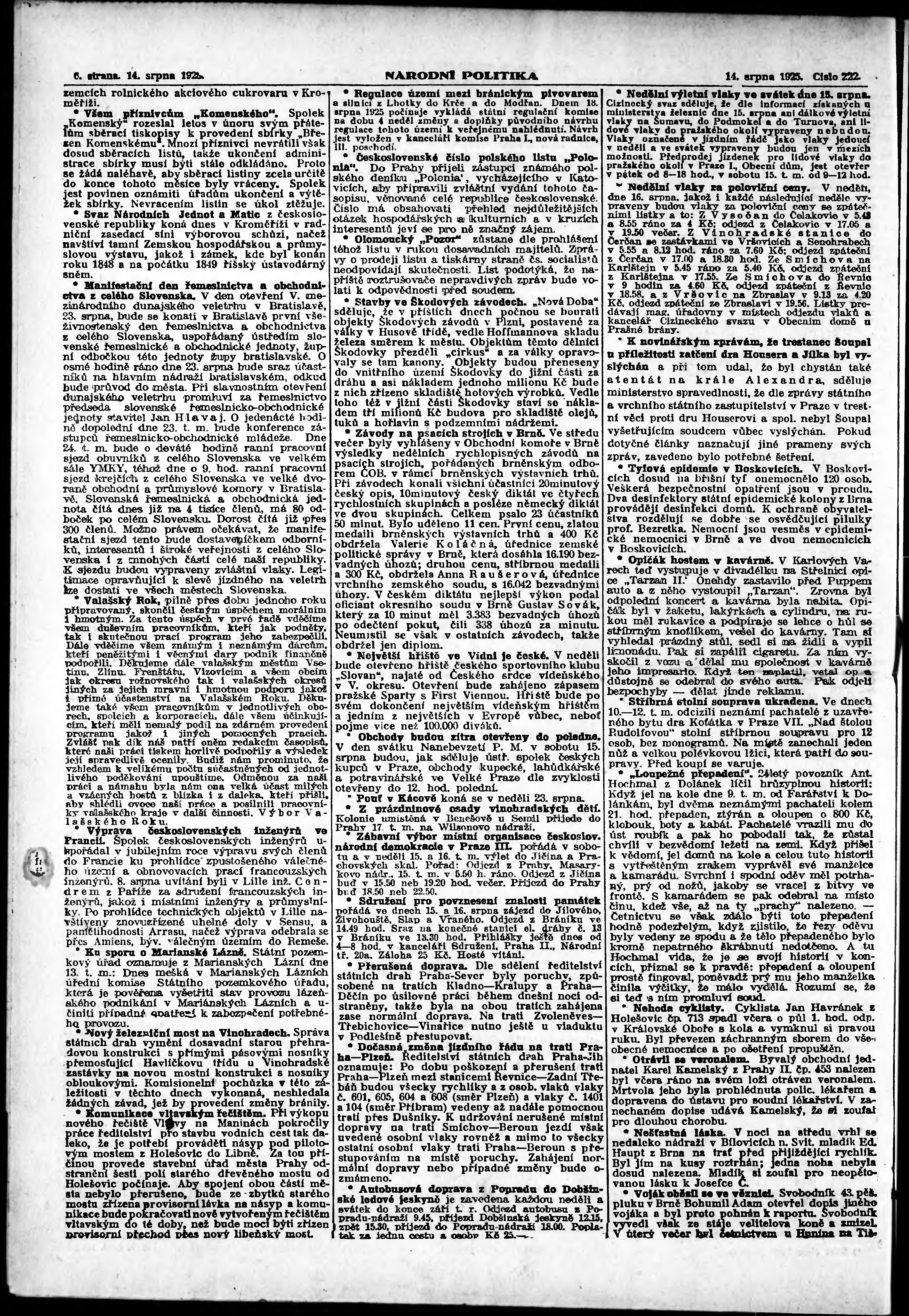 ranní vydání; vydání pro Prahu;
