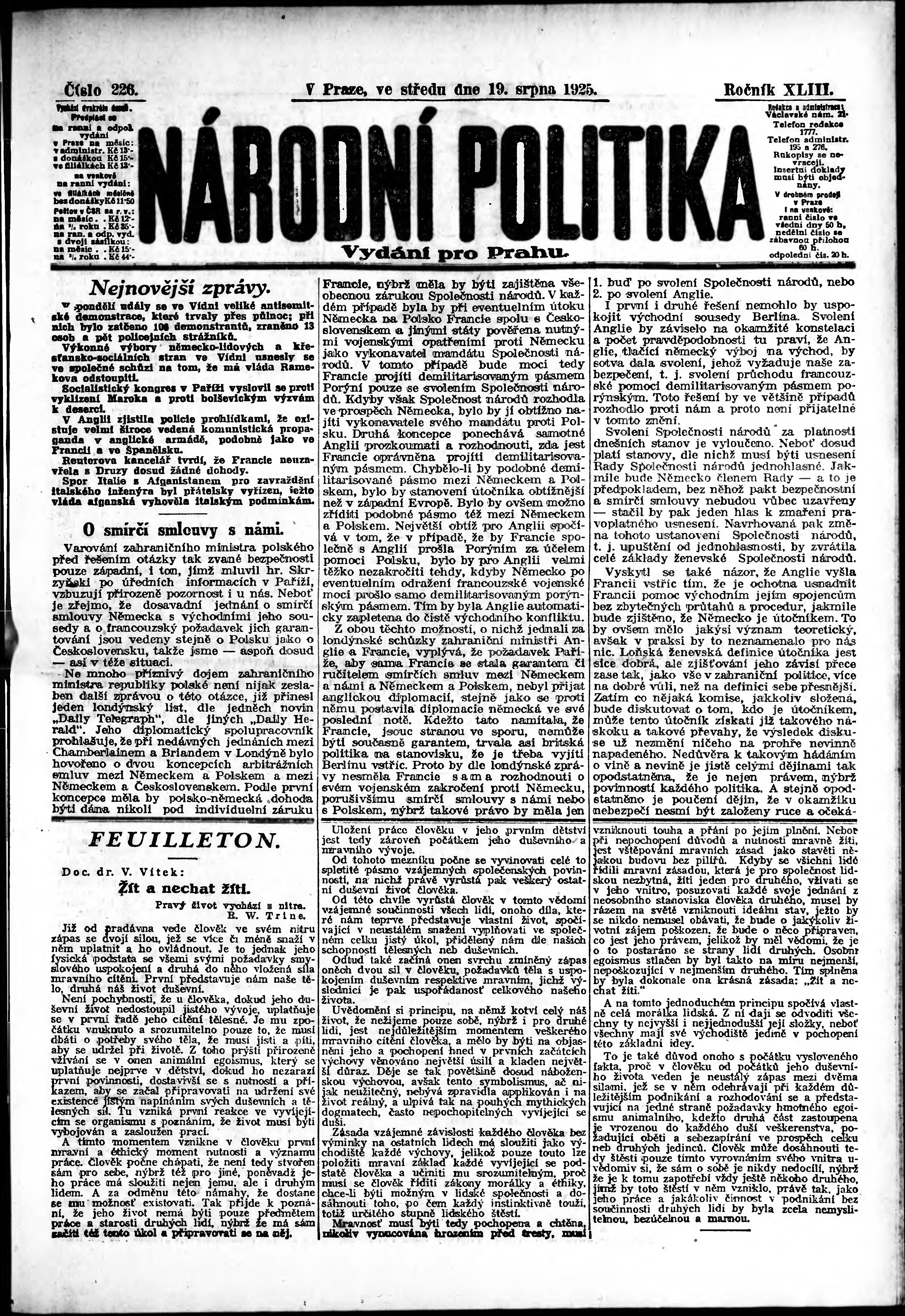ranní vydání; vydání pro Prahu;