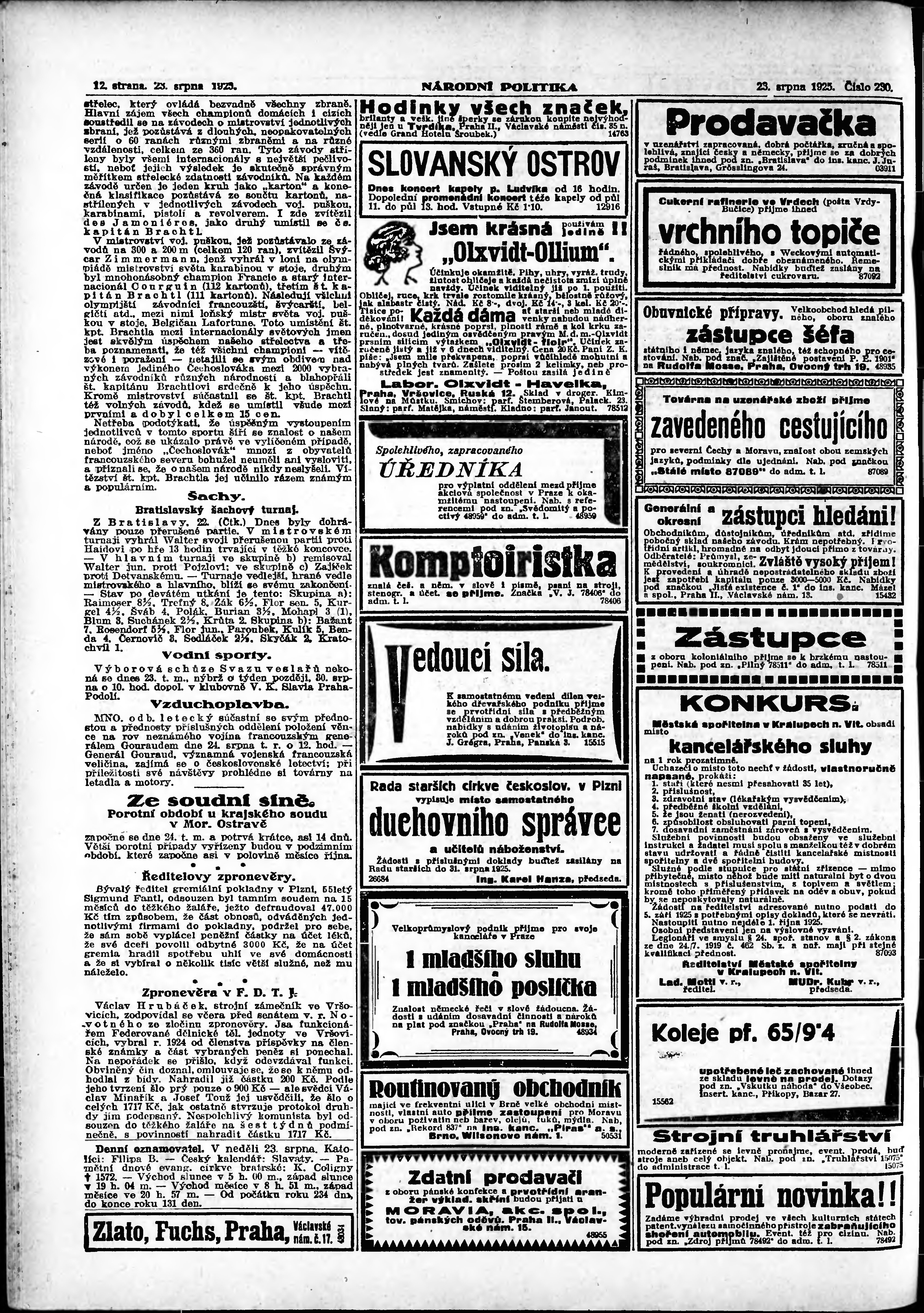 * Datum vydání výtisku: 23.8.1925 Číslo výtisku: 230 Poznámky k výtisku: ranní vydání;