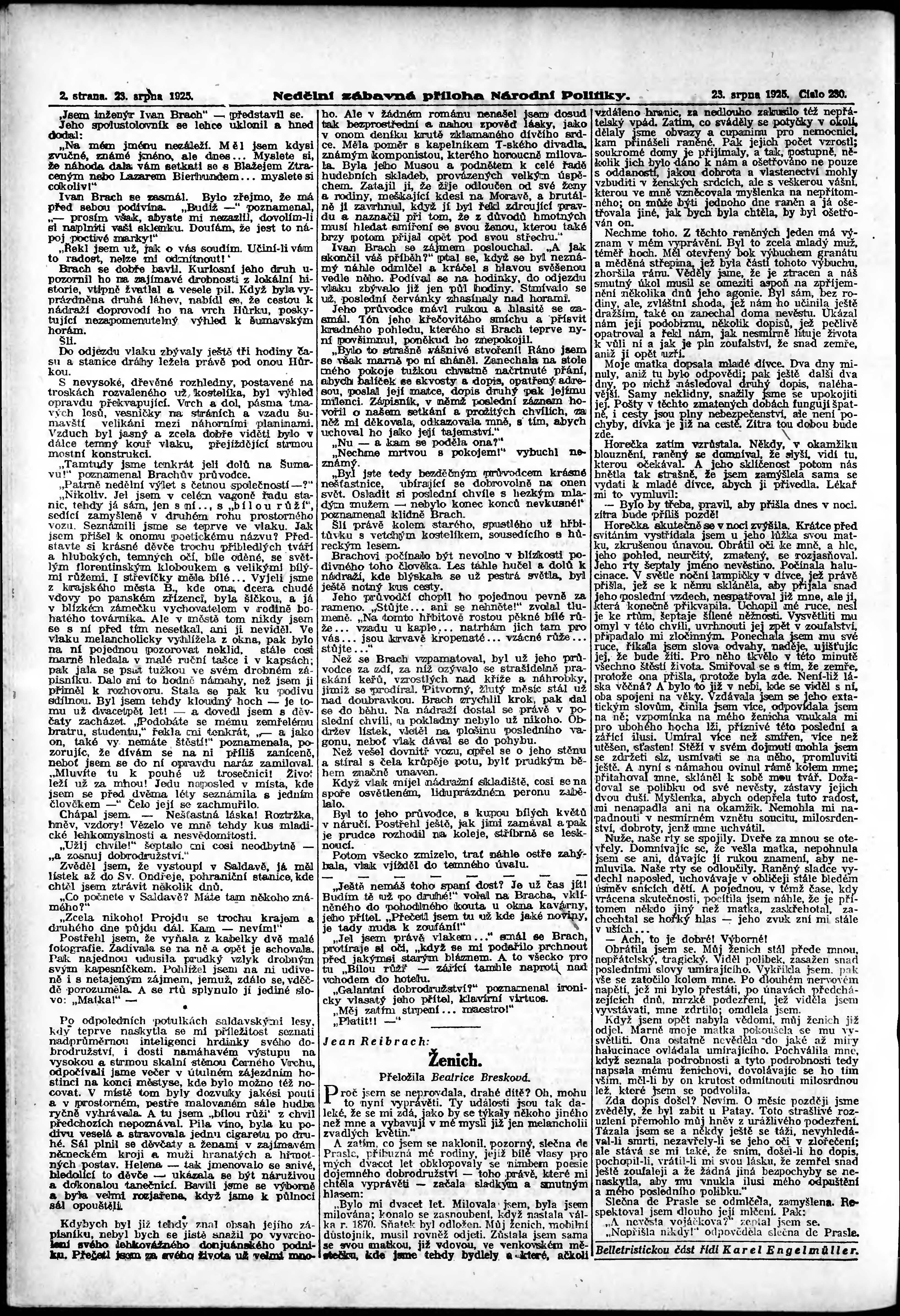 * Datum vydání výtisku: 23.8.1925 Číslo výtisku: 230 Typ výtisku: příloha