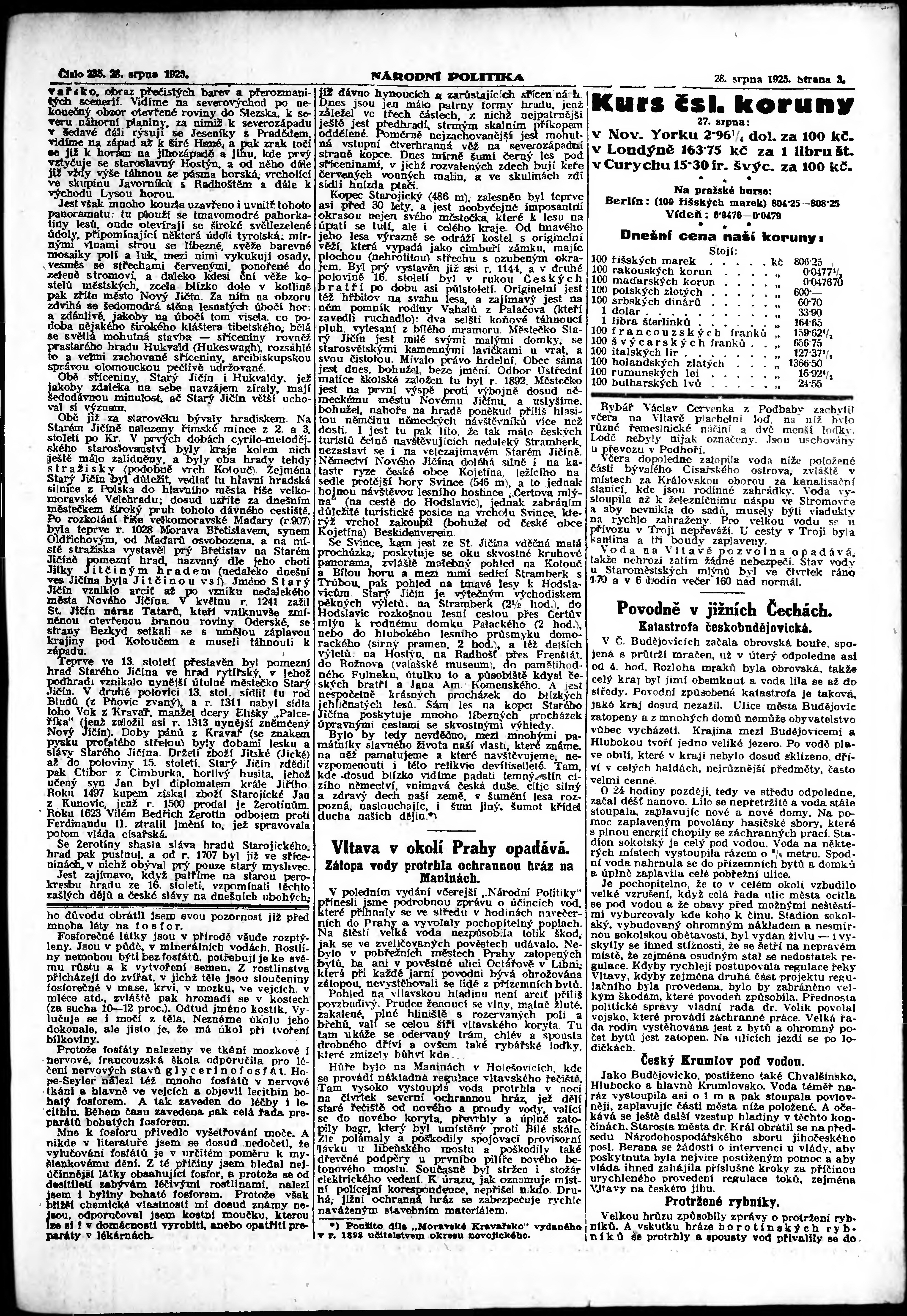 * Datum vydání výtisku: 28.8.1925 Číslo výtisku: 235 Poznámky k výtisku: ranní vydání; vydání pro Prahu;