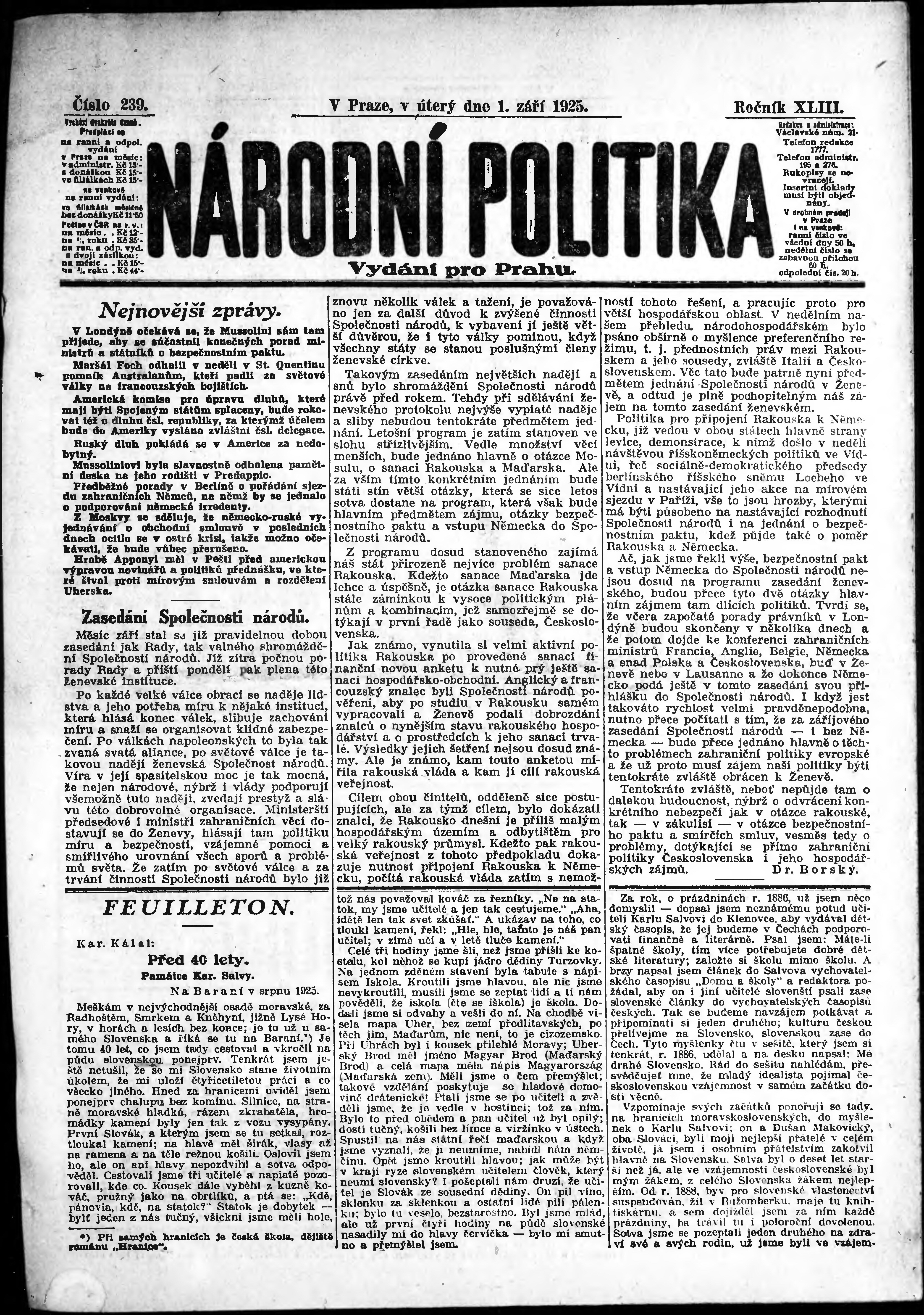 ranní vydání; vydání pro Prahu;