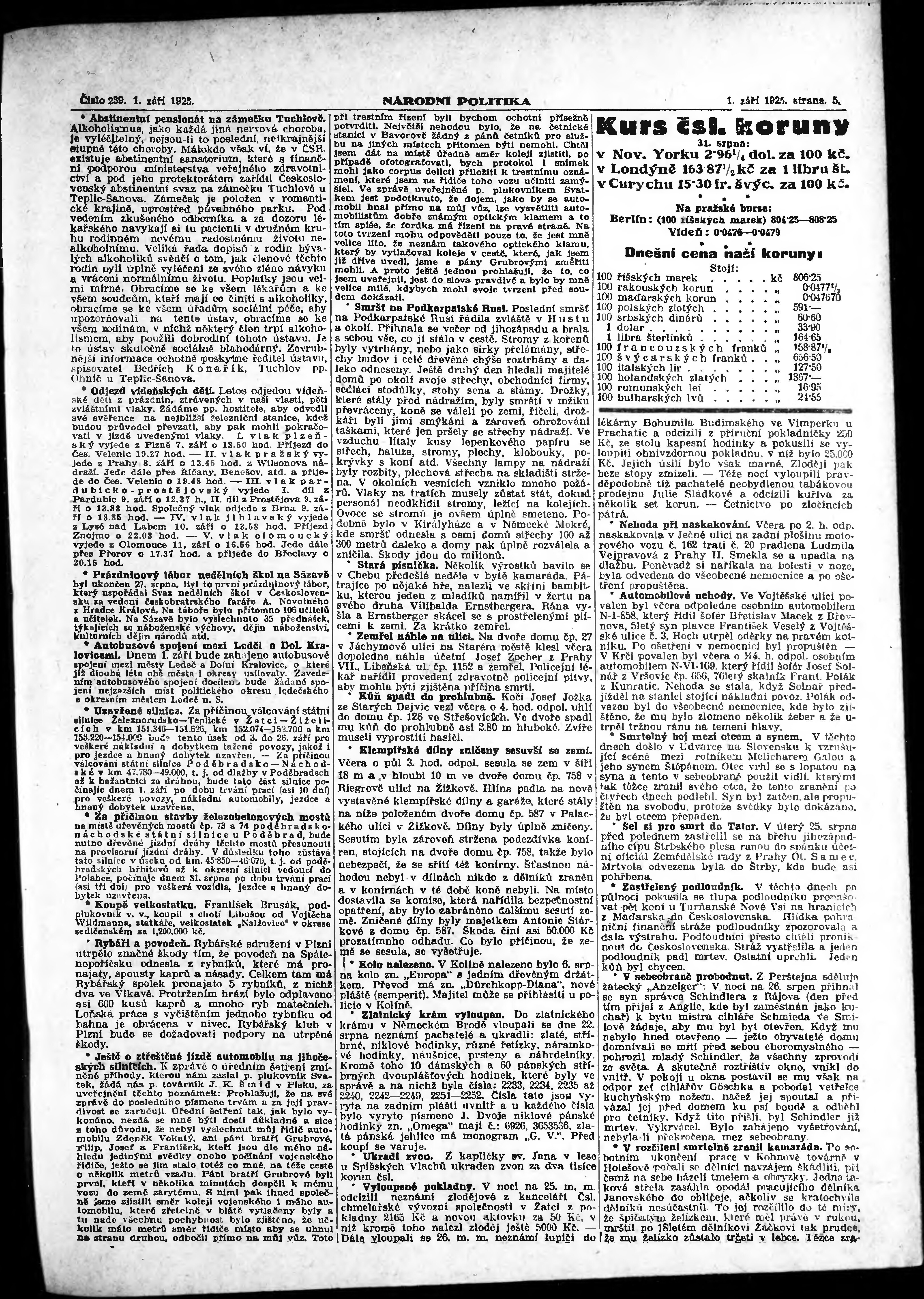 * Datum vydání výtisku: 1.9.1925 Číslo výtisku: 239 Poznámky k výtisku: ranní vydání; vydání pro Prahu;