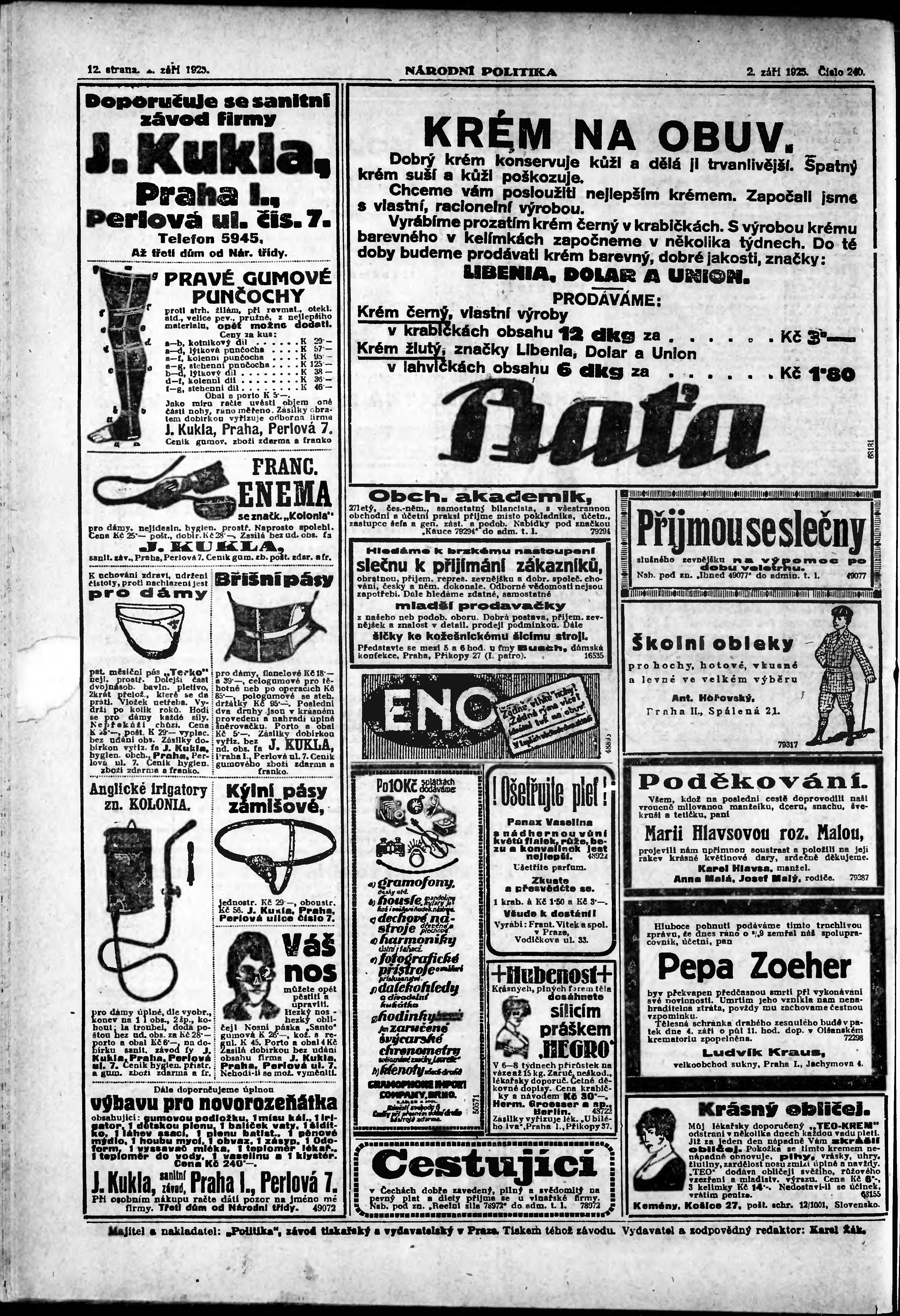 ranní vydání; vydání pro Prahu;