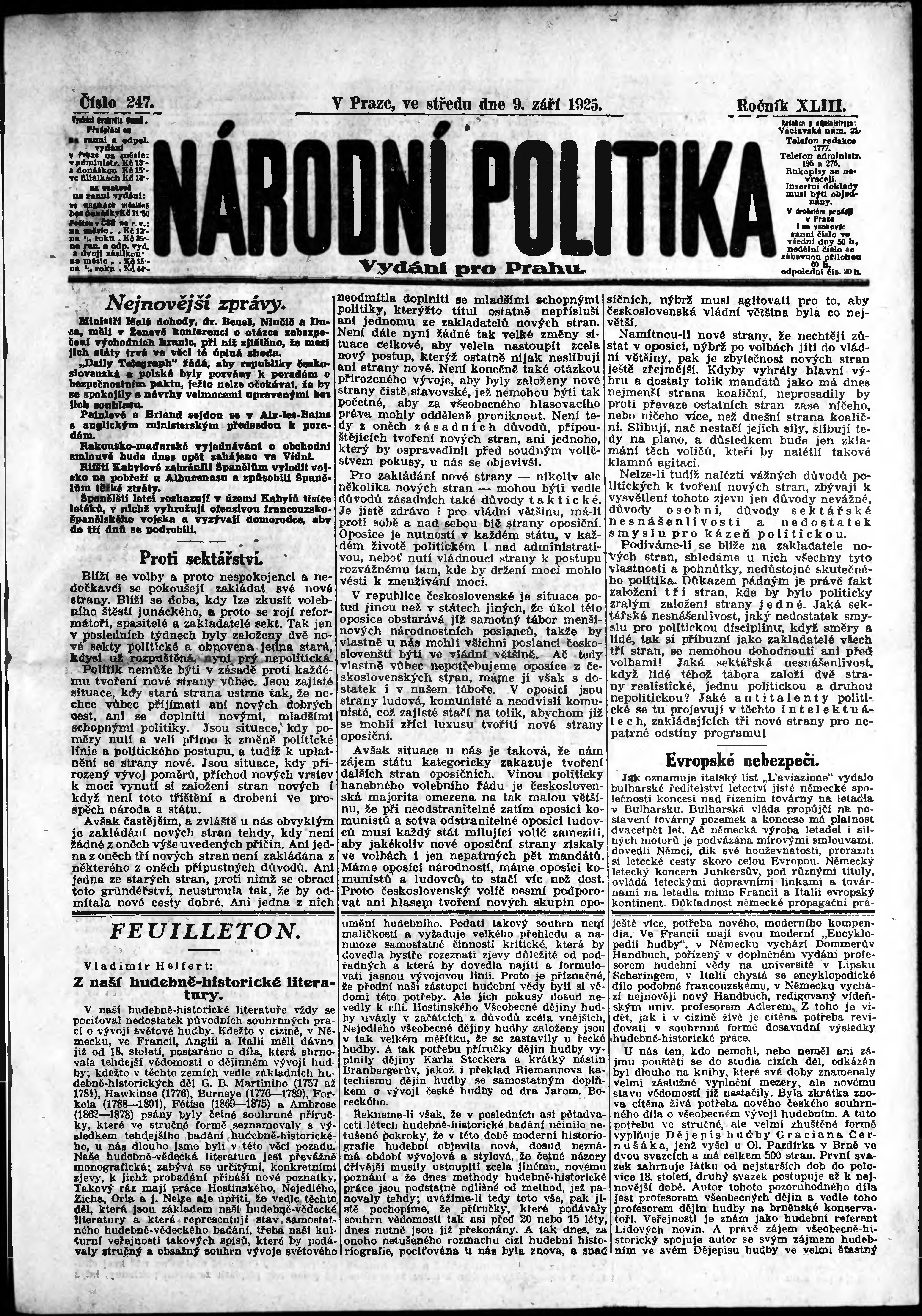 ranní vydání; vydání pro Prahu;
