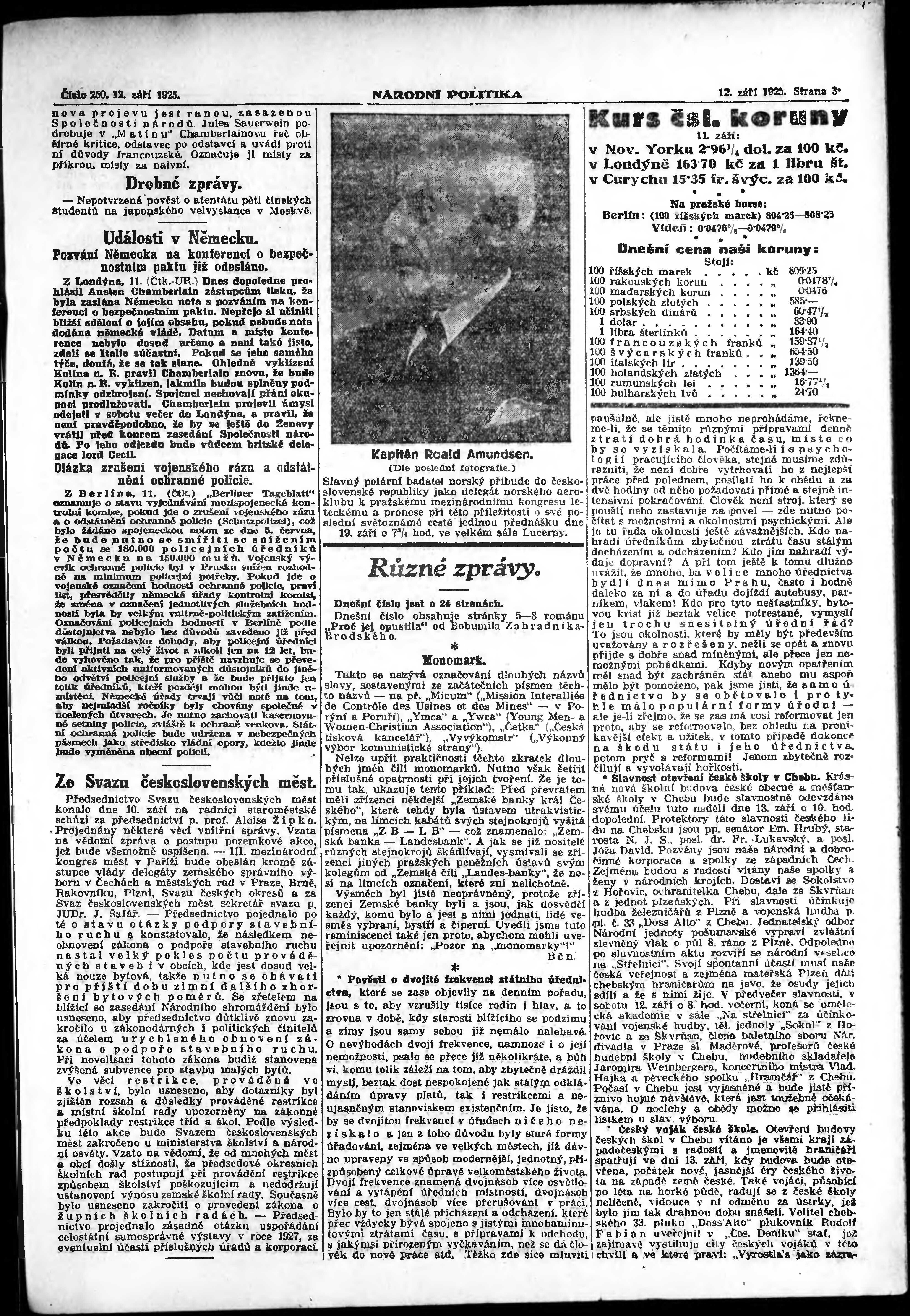 * Datum vydání výtisku: 12.9.1925 Číslo výtisku: 250 Poznámky k výtisku: ranní vydání; vydání pro Prahu;