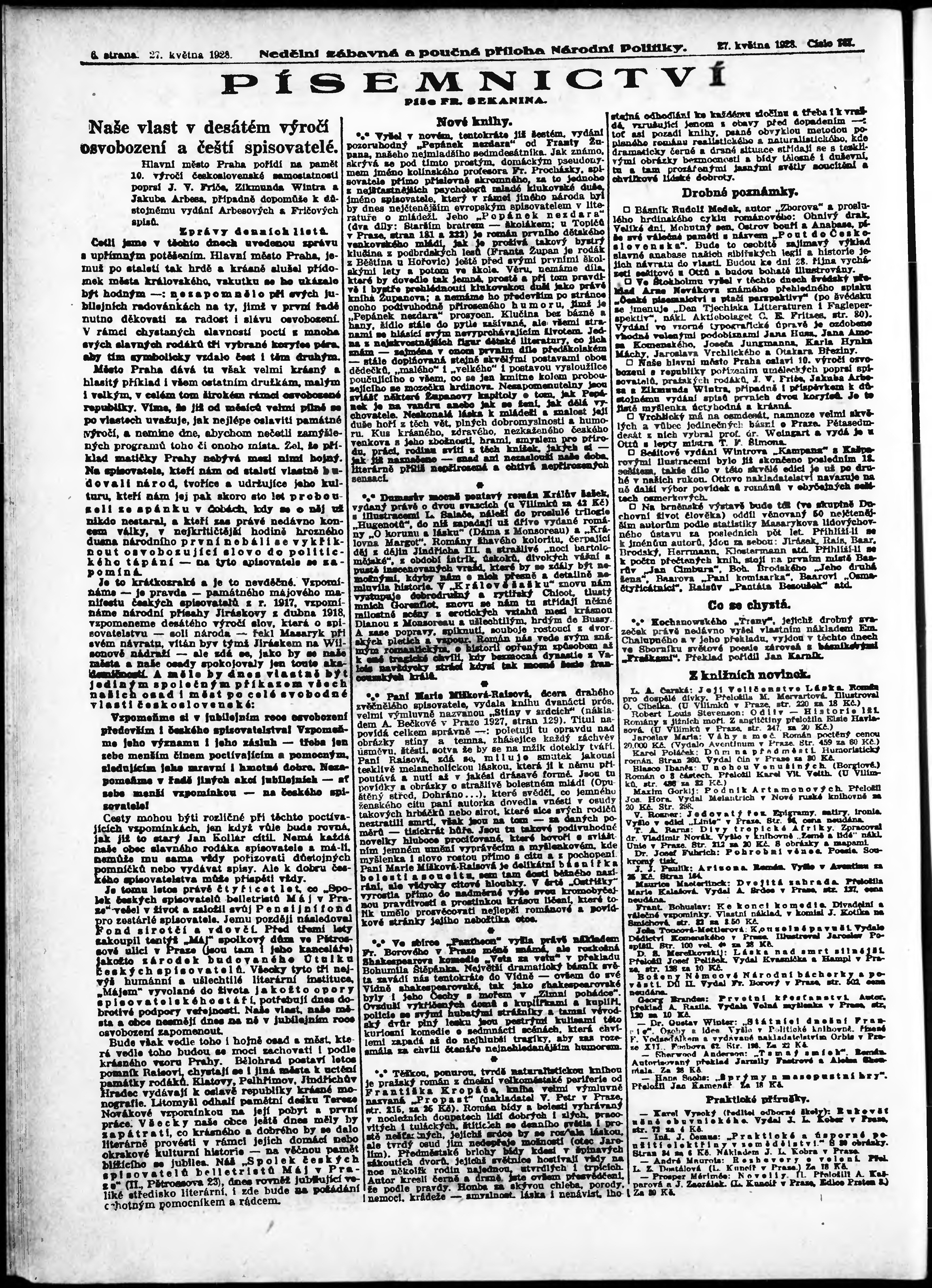 * Datum vydání výtisku: 27.5.1928 Číslo výtisku: 147 Typ výtisku: příloha