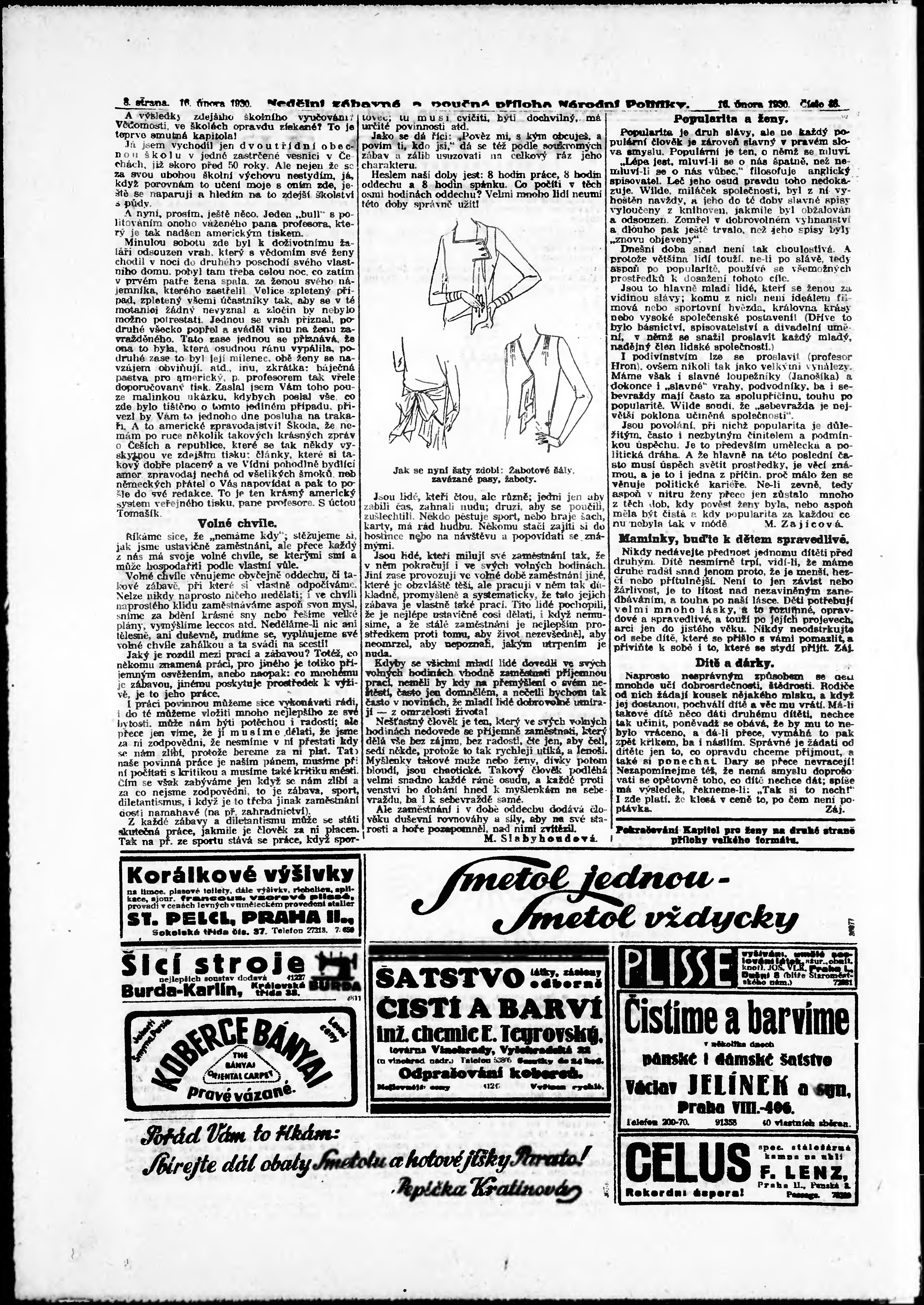 * Datum vydání výtisku: 16.2.1930 Číslo výtisku: 46 Typ výtisku: příloha