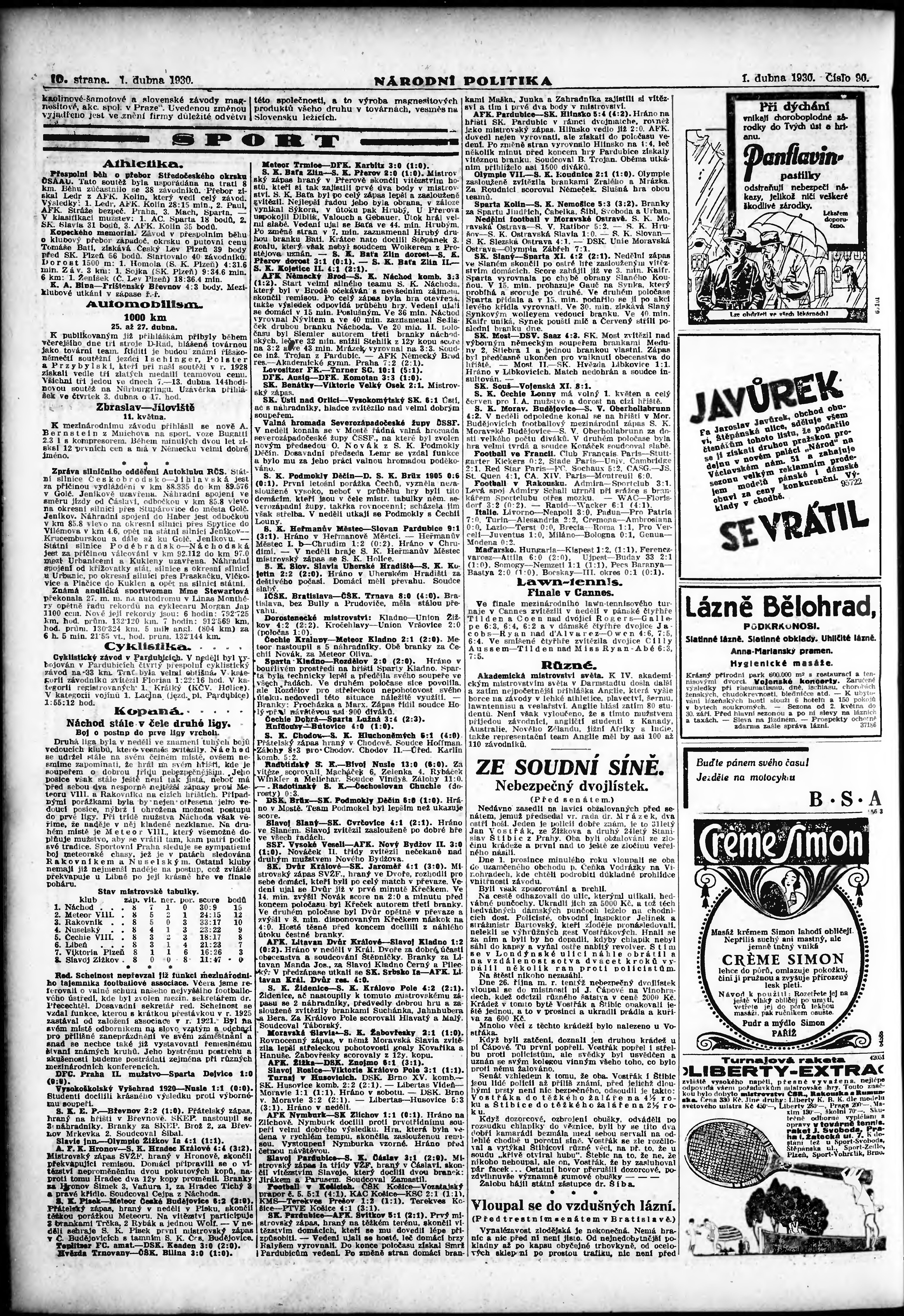 * Datum vydání výtisku: 1.4.1930 Číslo výtisku: 90 Poznámky k výtisku: ranní vydání; vydání pro Prahu;