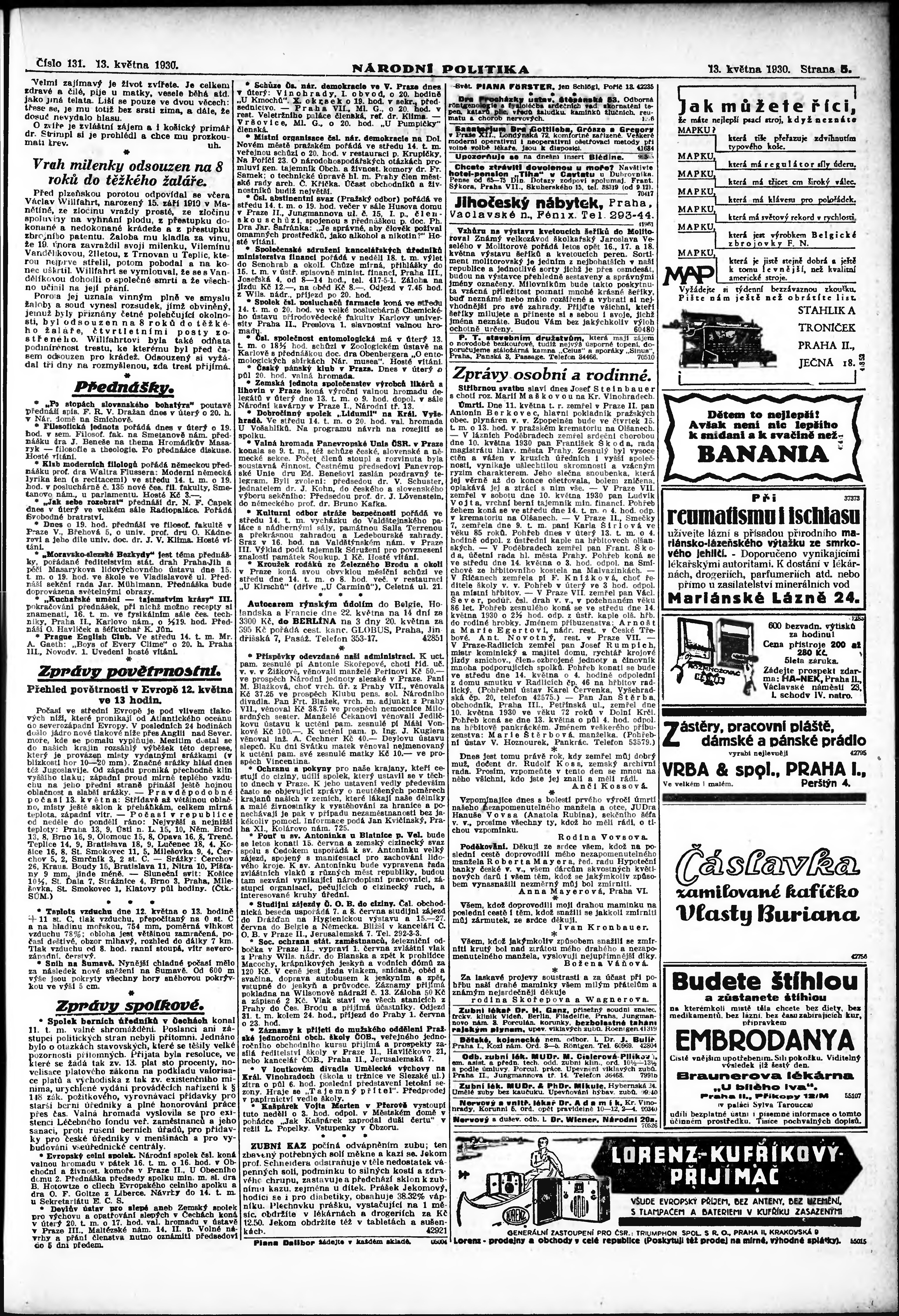 ranní vydání; vydání pro Prahu;