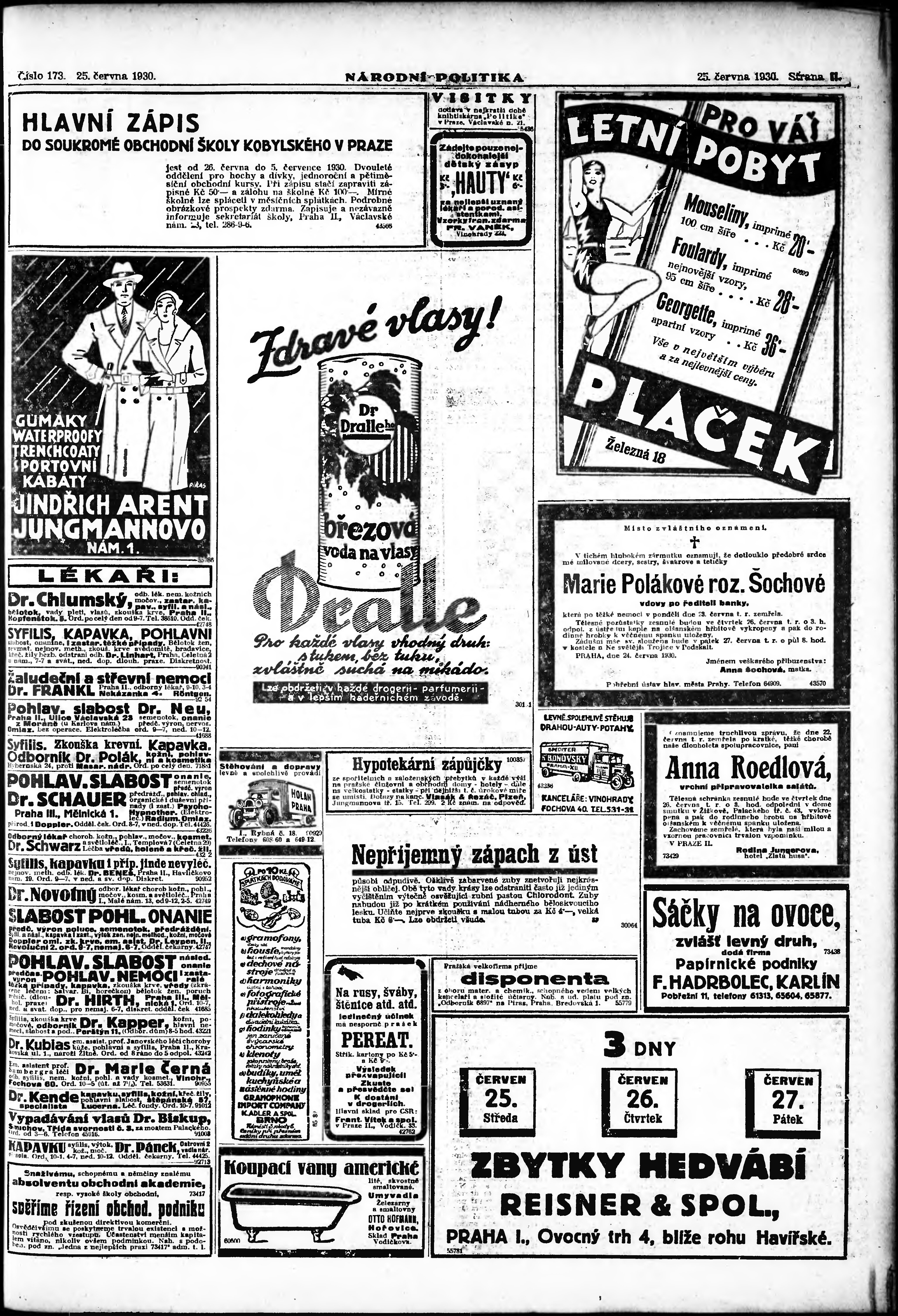 * Datum vydání výtisku: 25.6.1930 Číslo výtisku: 173 Poznámky k výtisku: ranní vydání; vydání pro Prahu;