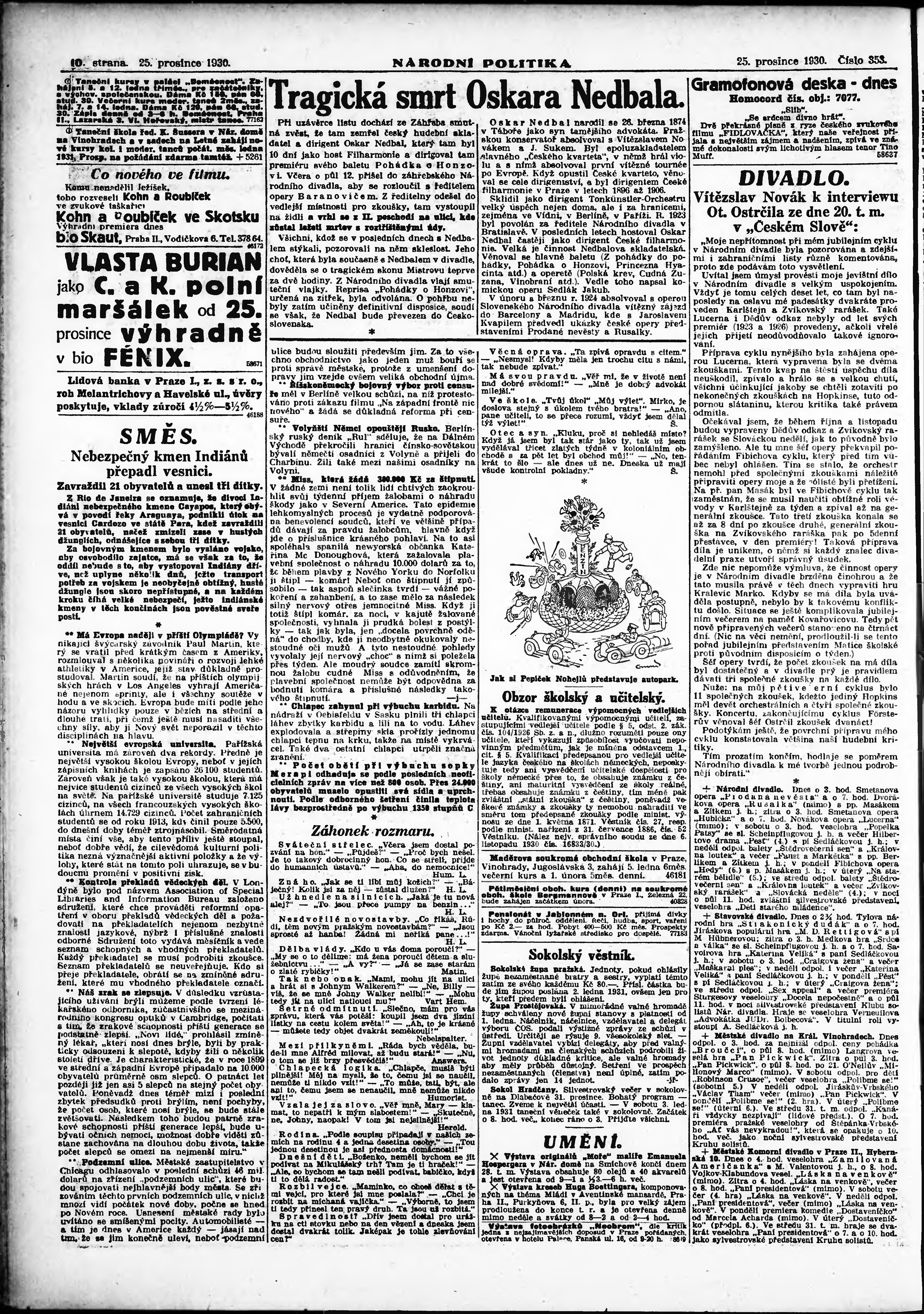 * Datum vydání výtisku: 25.12.1930 Číslo výtisku: 353 Poznámky k výtisku: ranní vydání;