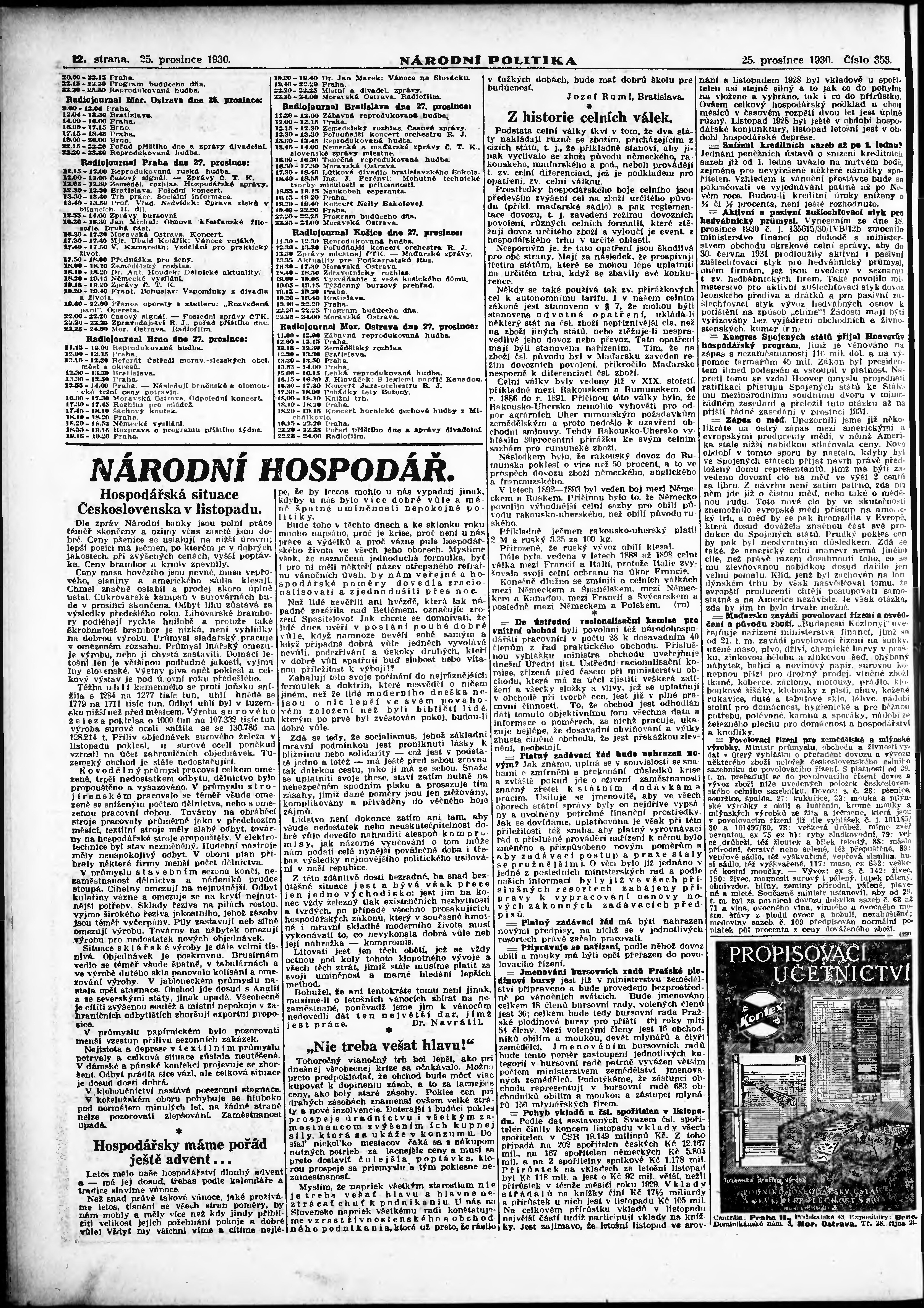 * Datum vydání výtisku: 25.12.1930 Číslo výtisku: 353 Poznámky k výtisku: ranní vydání;