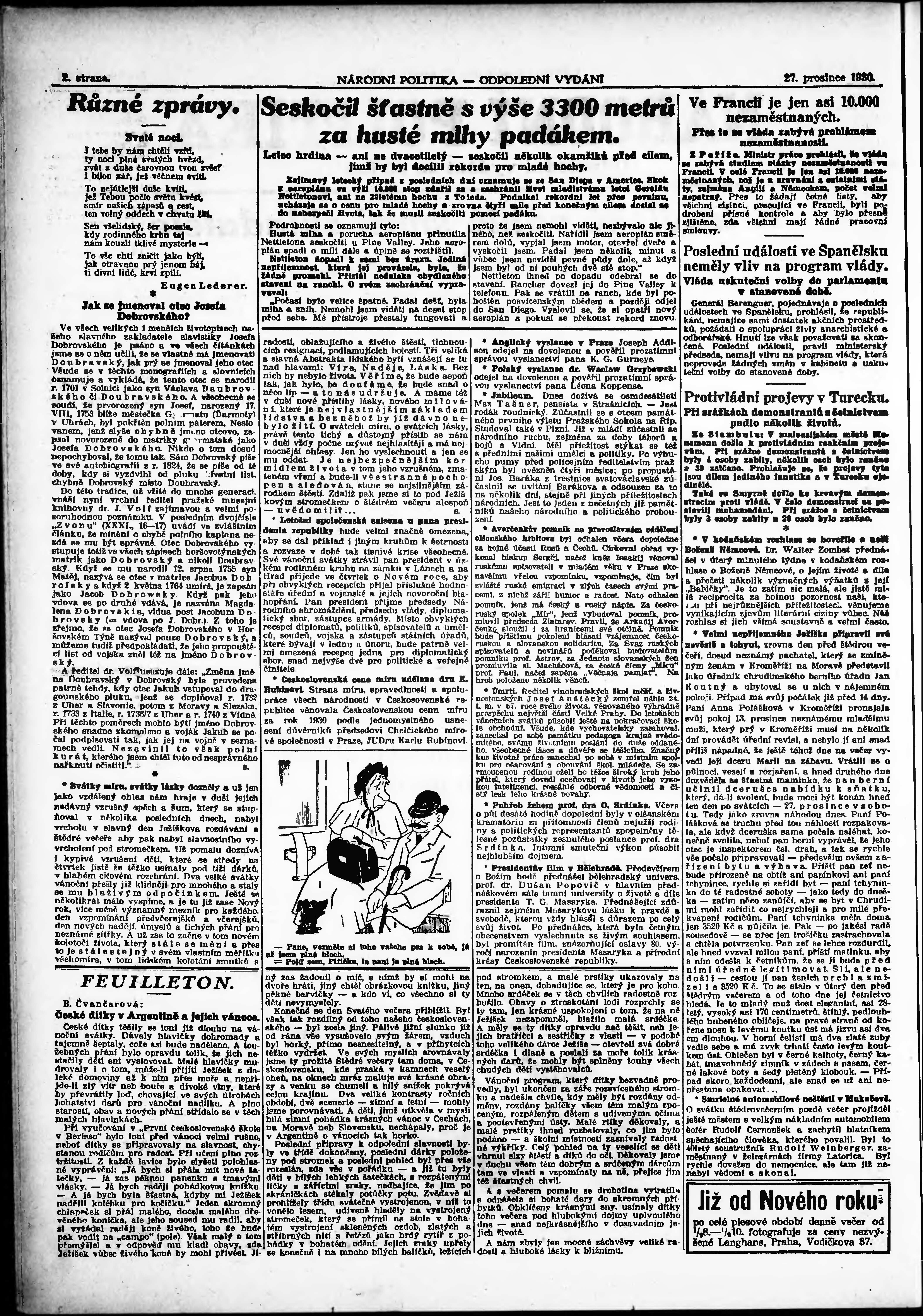 * Datum vydání výtisku: 27.12.1930 Číslo výtisku: 354 Poznámky k výtisku: odpolední vydání;