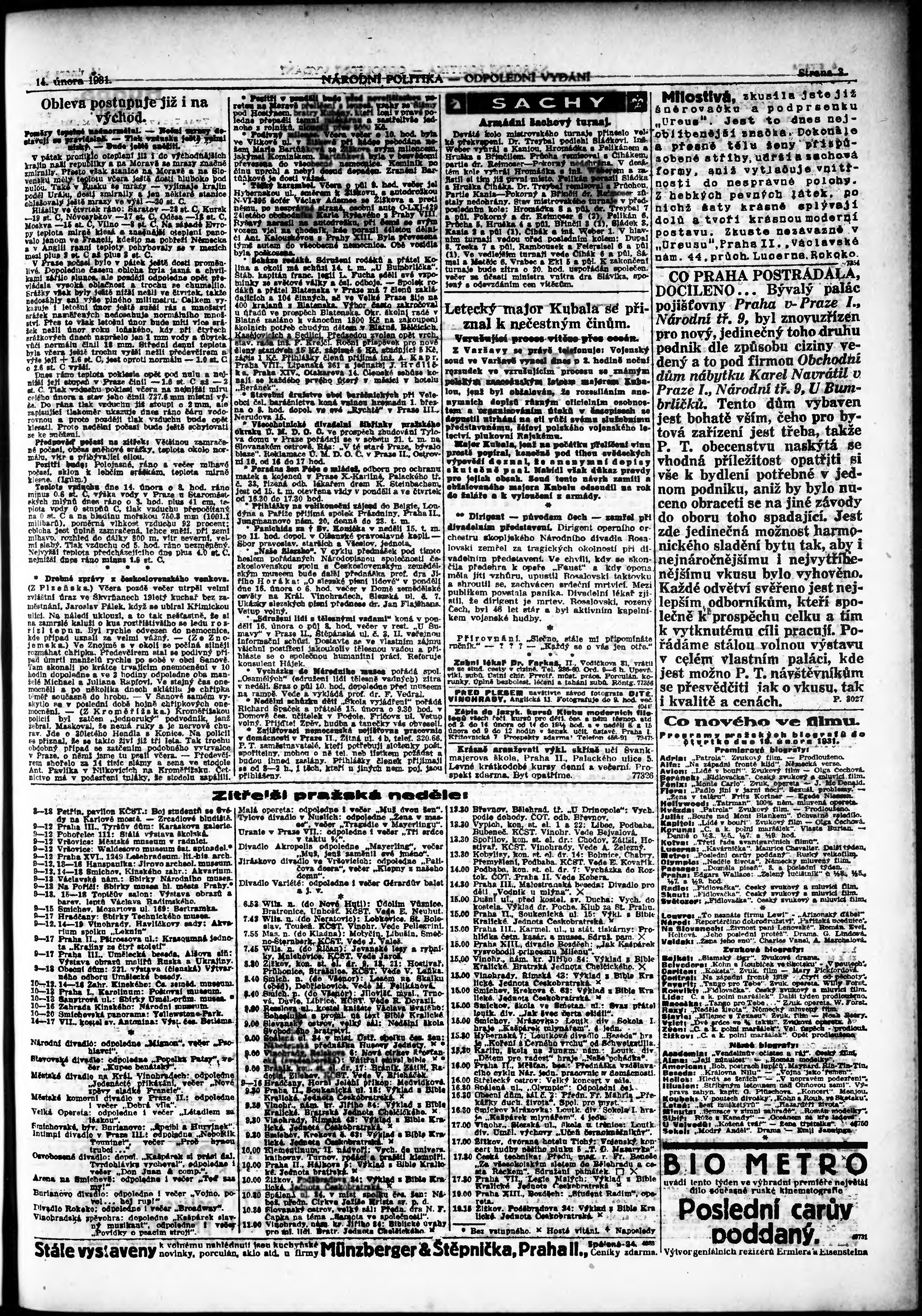 * Datum vydání výtisku: 14.2.1931 Číslo výtisku: 45 Poznámky k výtisku: odpolední vydání;