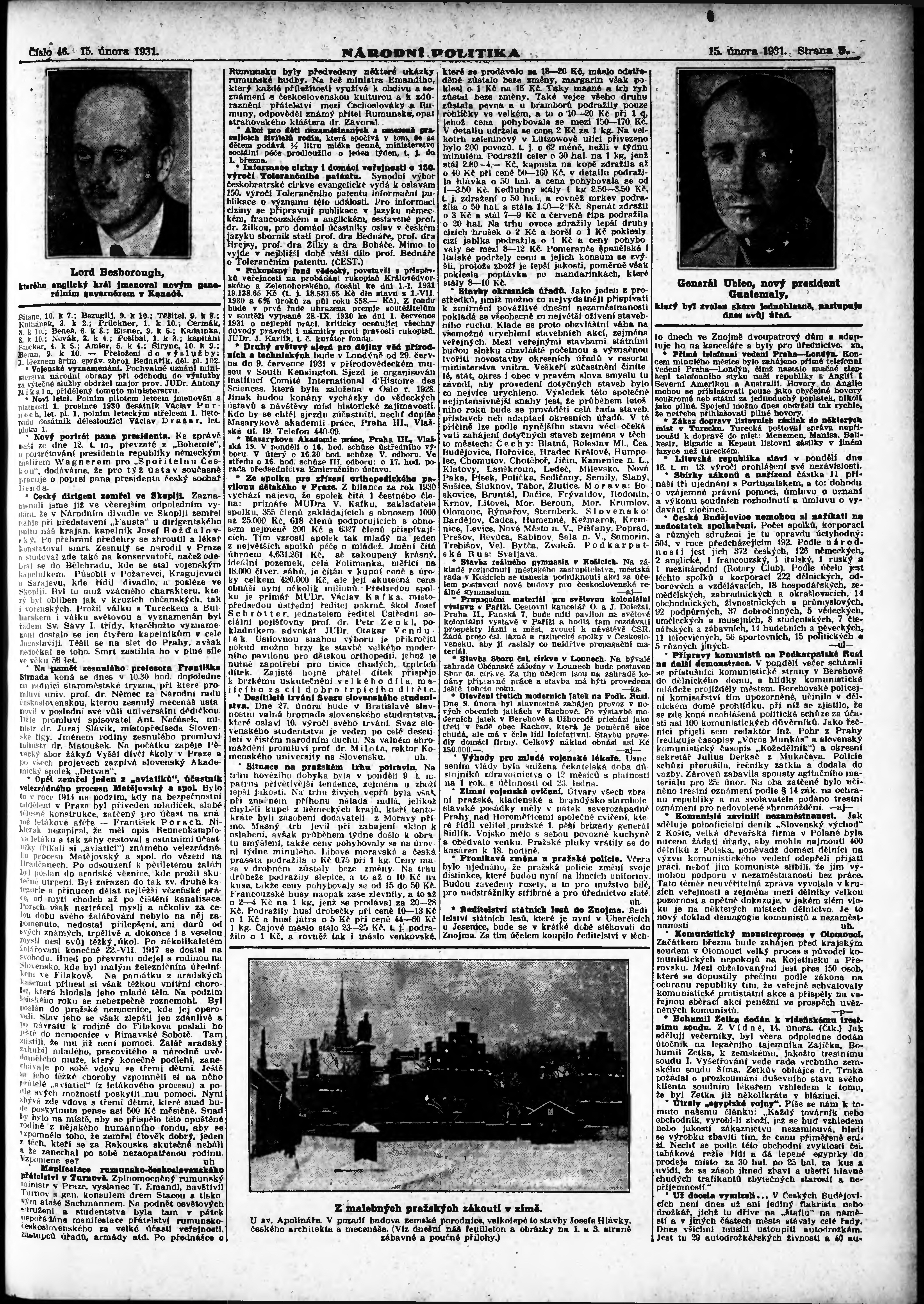 * Datum vydání výtisku: 15.2.1931 Číslo výtisku: 46 Poznámky k výtisku: ranní vydání;