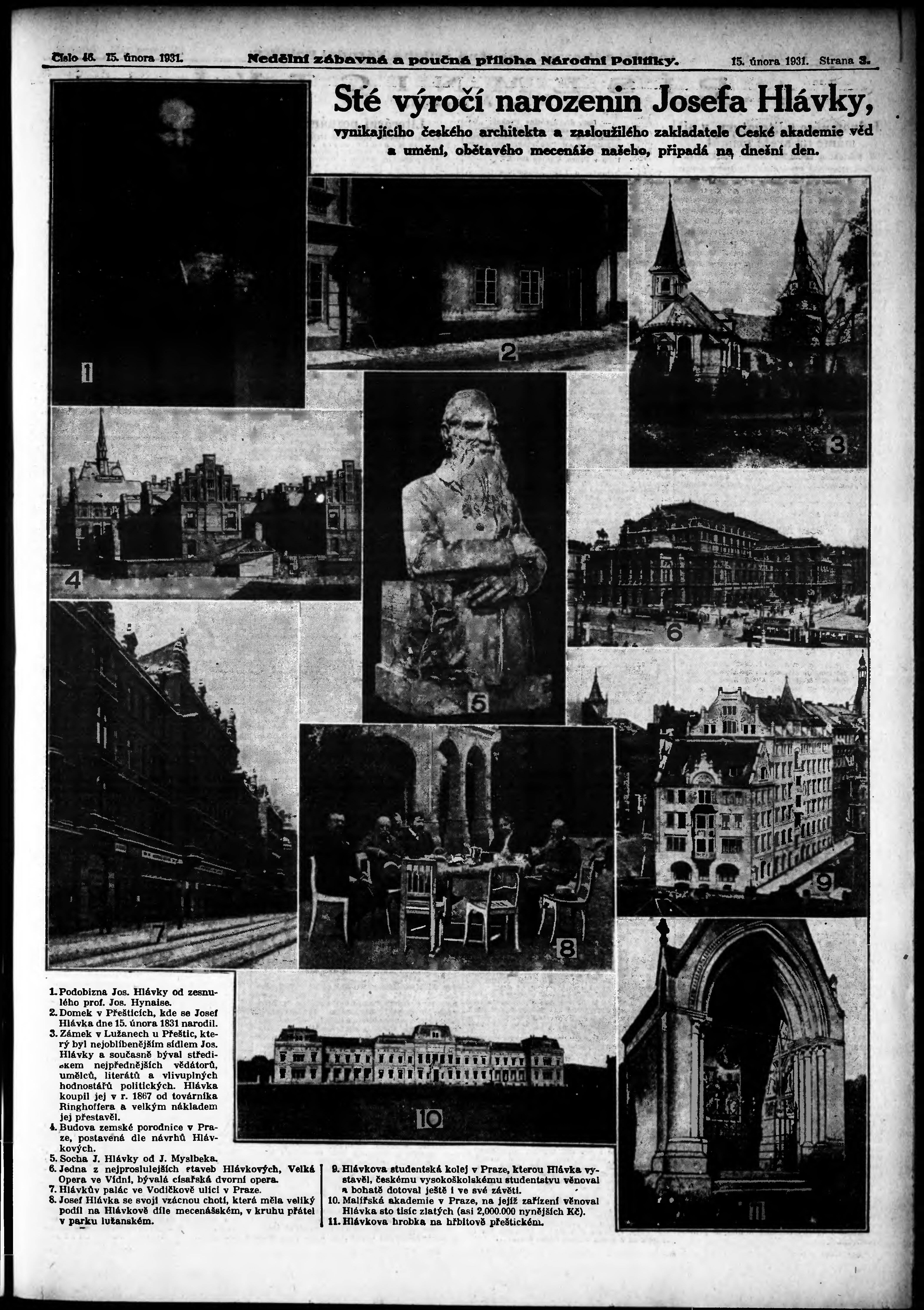 * Datum vydání výtisku: 15.2.1931 Číslo výtisku: 46 Typ výtisku: příloha