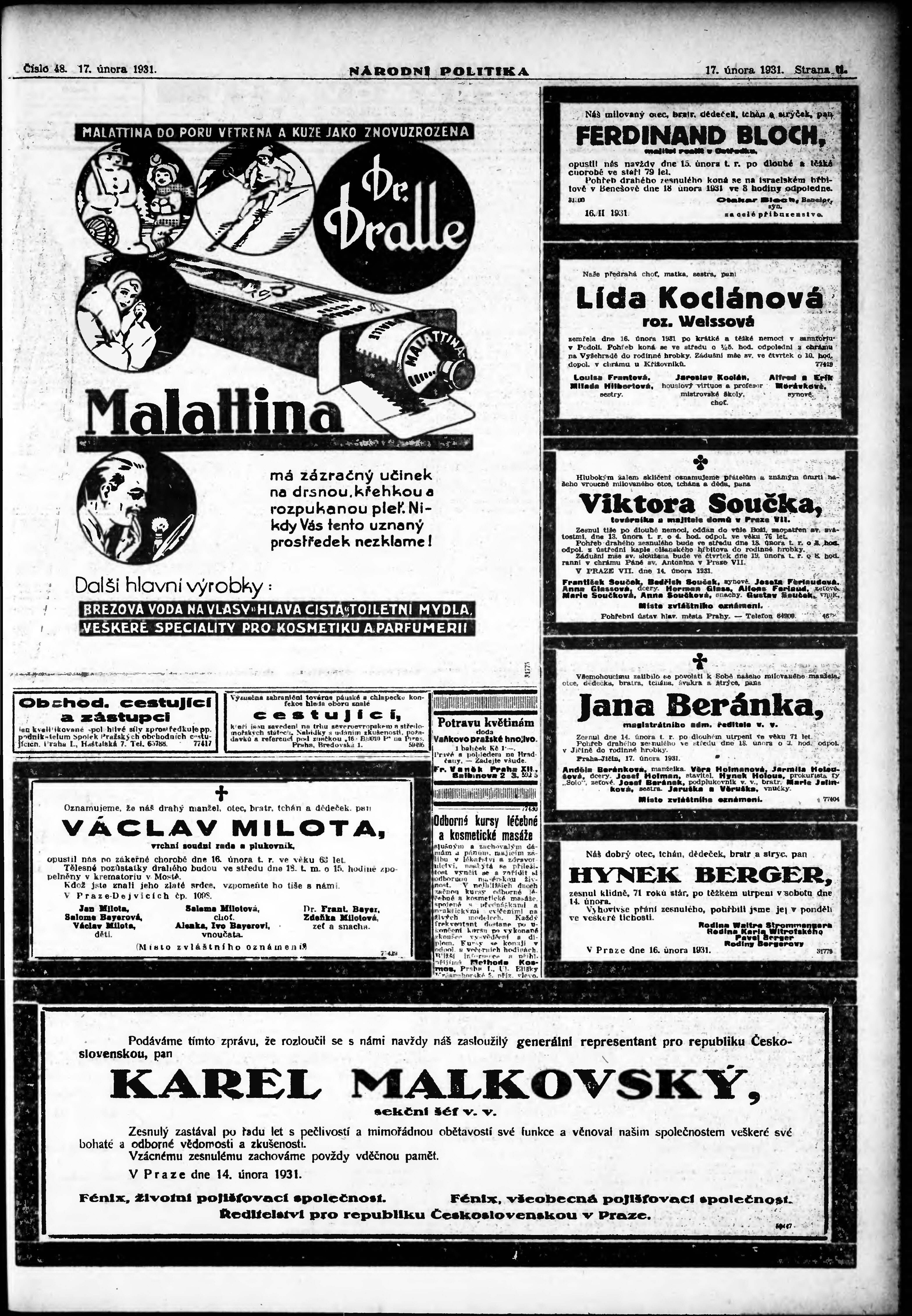 * Datum vydání výtisku: 17.2.1931 Číslo výtisku: 48 Poznámky k výtisku: ranní vydání; vydání pro Prahu;