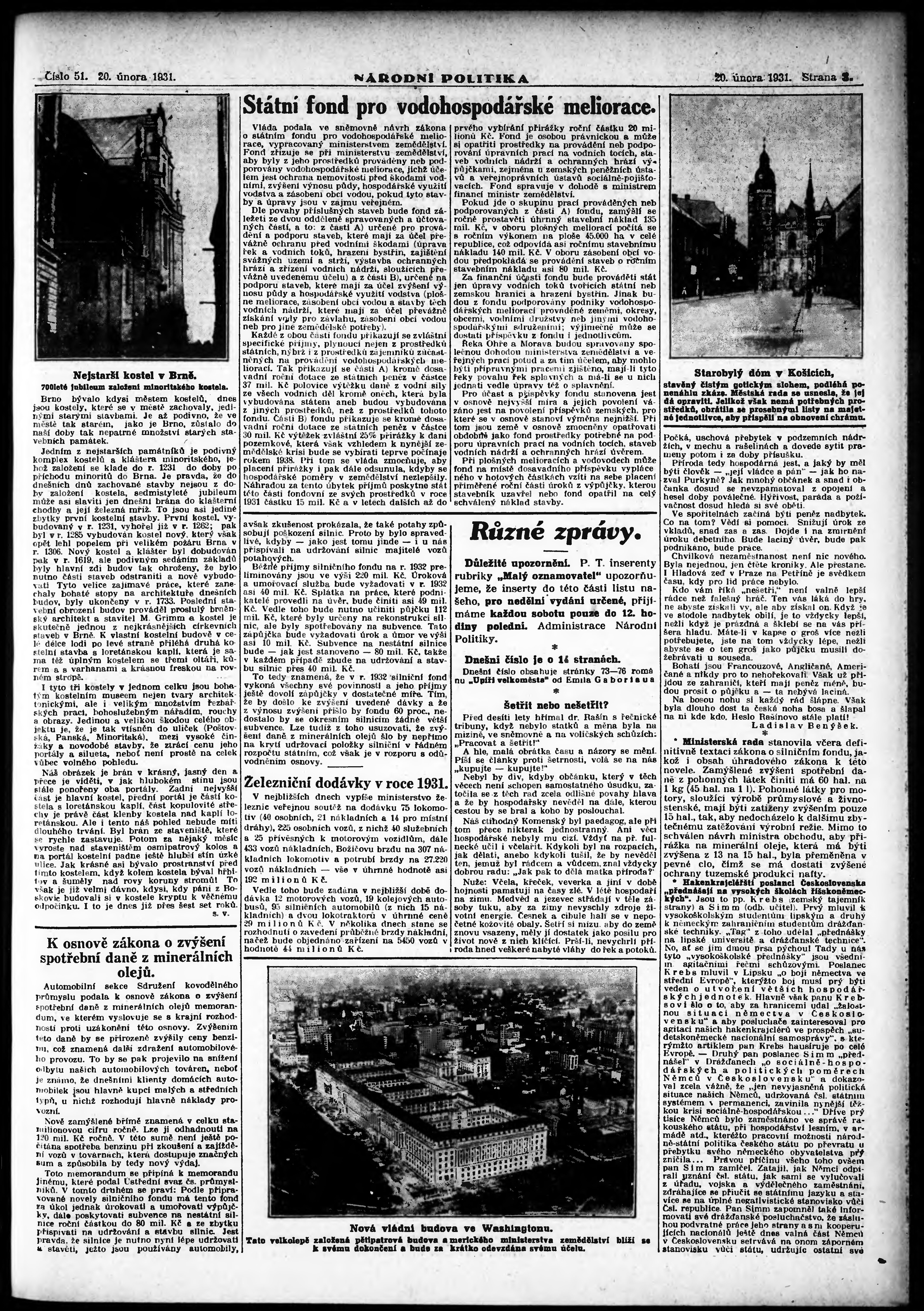 * Datum vydání výtisku: 20.2.1931 Číslo výtisku: 51 Poznámky k výtisku: ranní vydání; vydání pro Prahu;