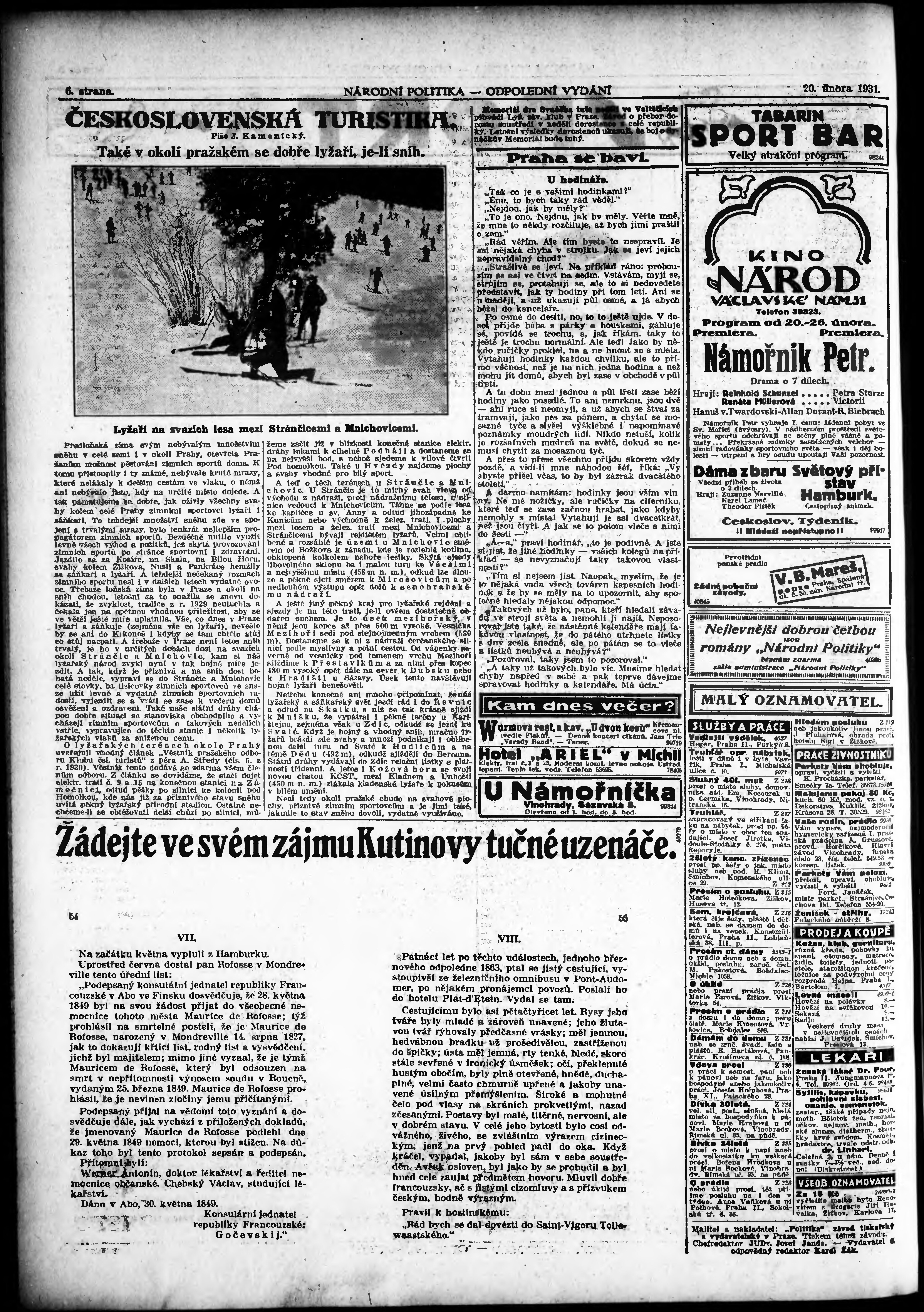 * Datum vydání výtisku: 20.2.1931 Číslo výtisku: 51 Poznámky k výtisku: odpolední vydání;