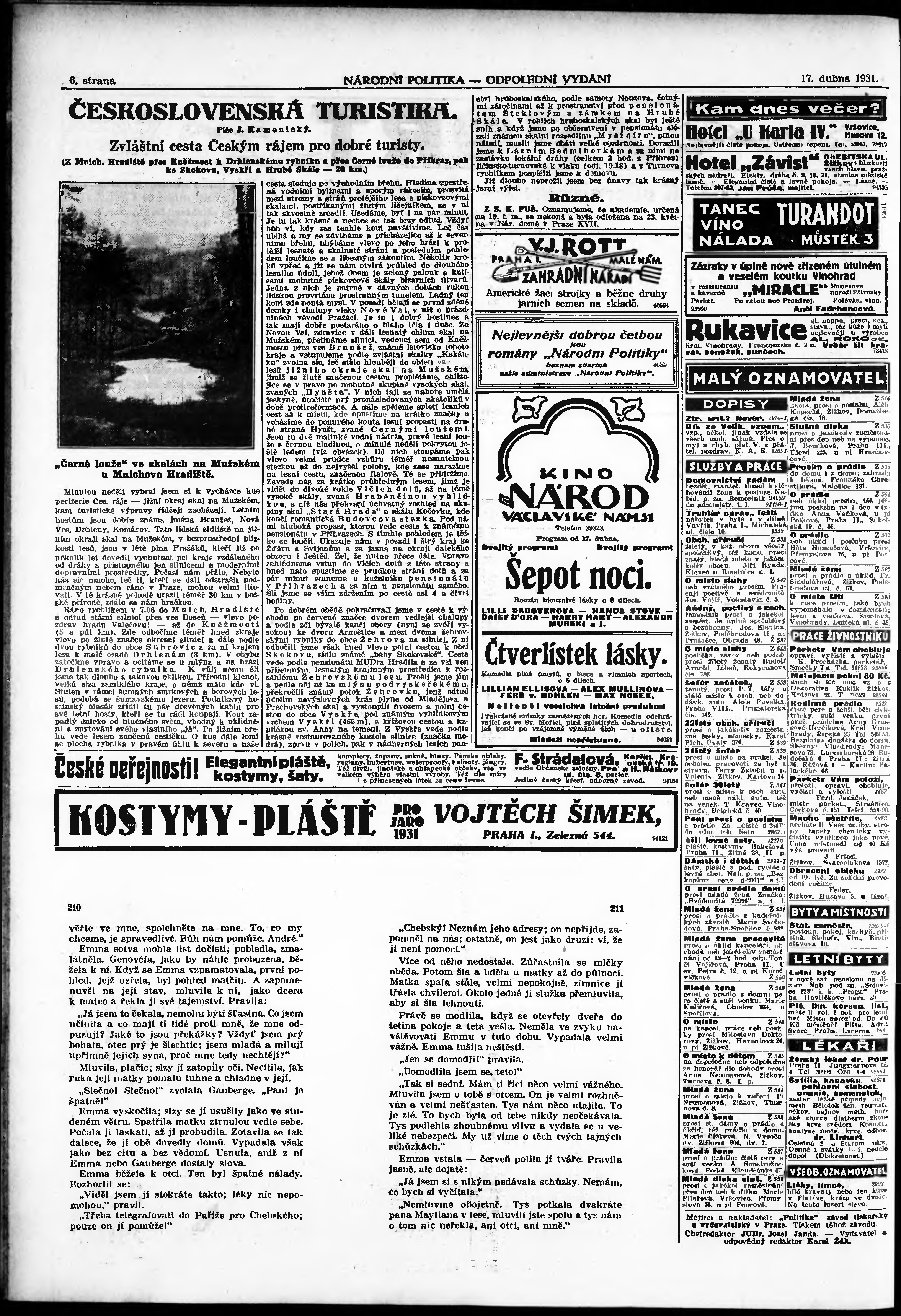 * Datum vydání výtisku: 17.4.1931 Číslo výtisku: 106 Poznámky k výtisku: odpolední vydání;