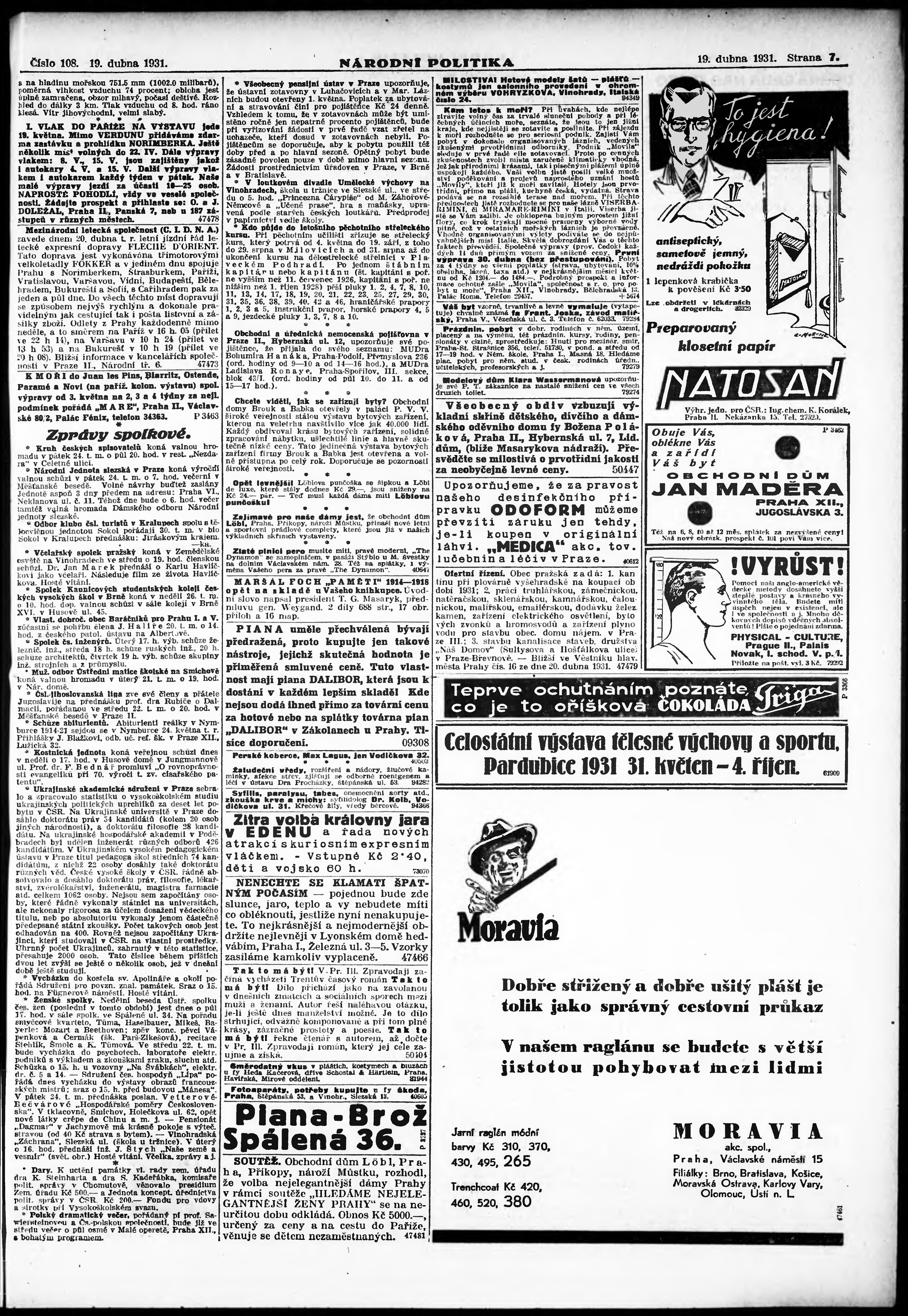 * Datum vydání výtisku: 19.4.1931 Číslo výtisku: 108 Poznámky k výtisku: ranní vydání;