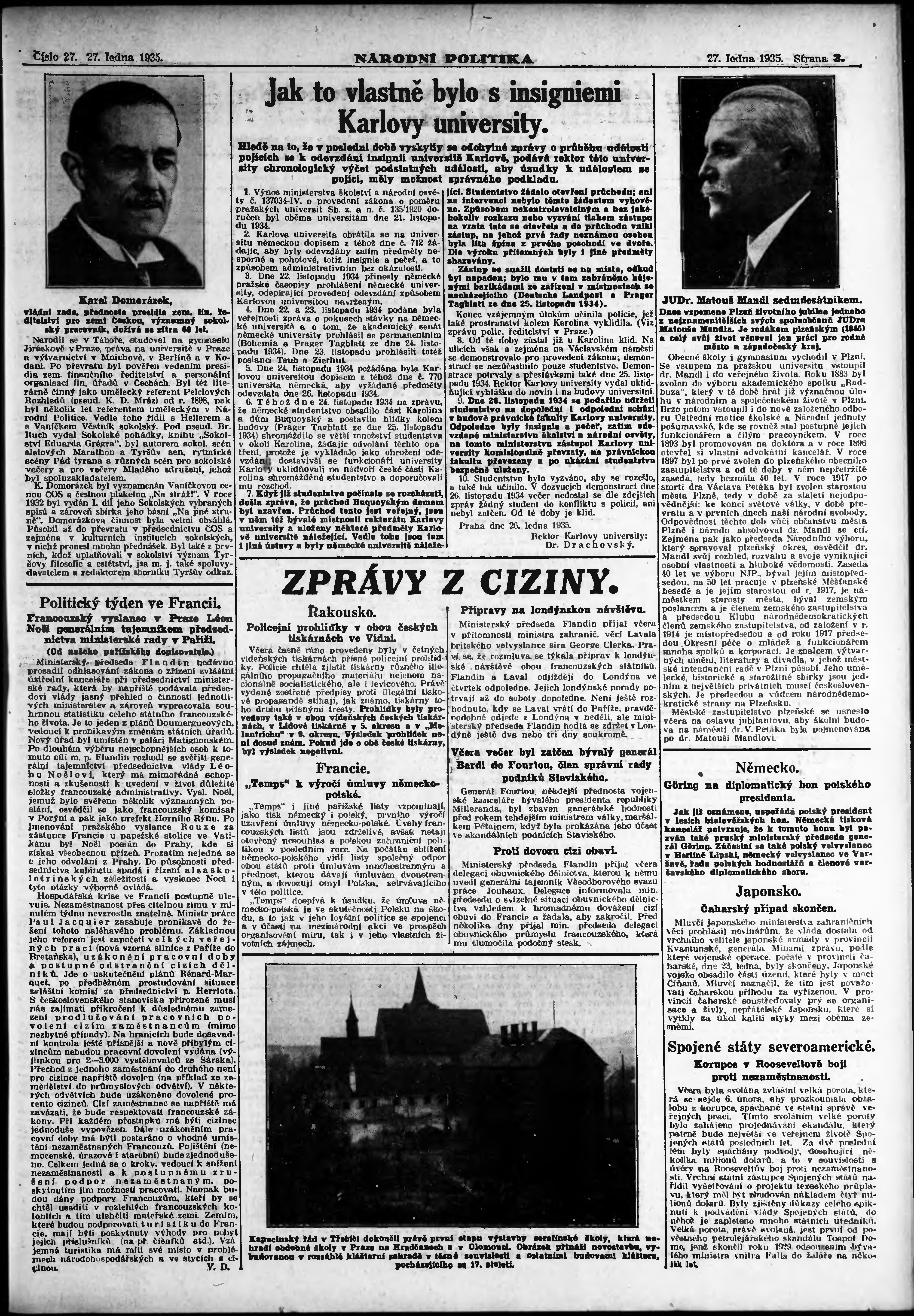 * Datum vydání výtisku: 27.1.1935 Číslo výtisku: 27 Poznámky k výtisku: ranní vydání;