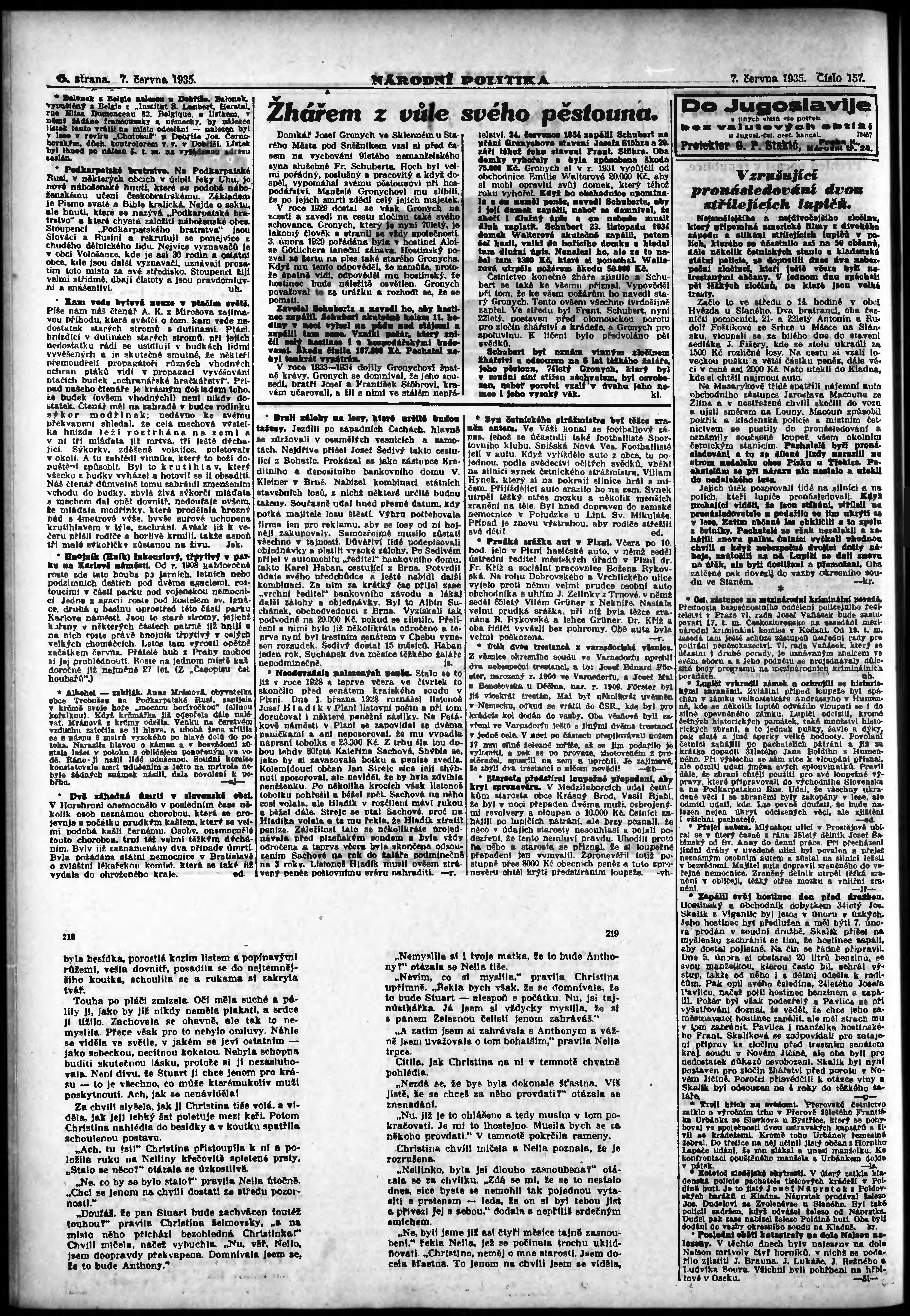 * Datum vydání výtisku: 7.6.1935 Číslo výtisku: 157 Poznámky k výtisku: ranní vydání; vydání pro Prahu;