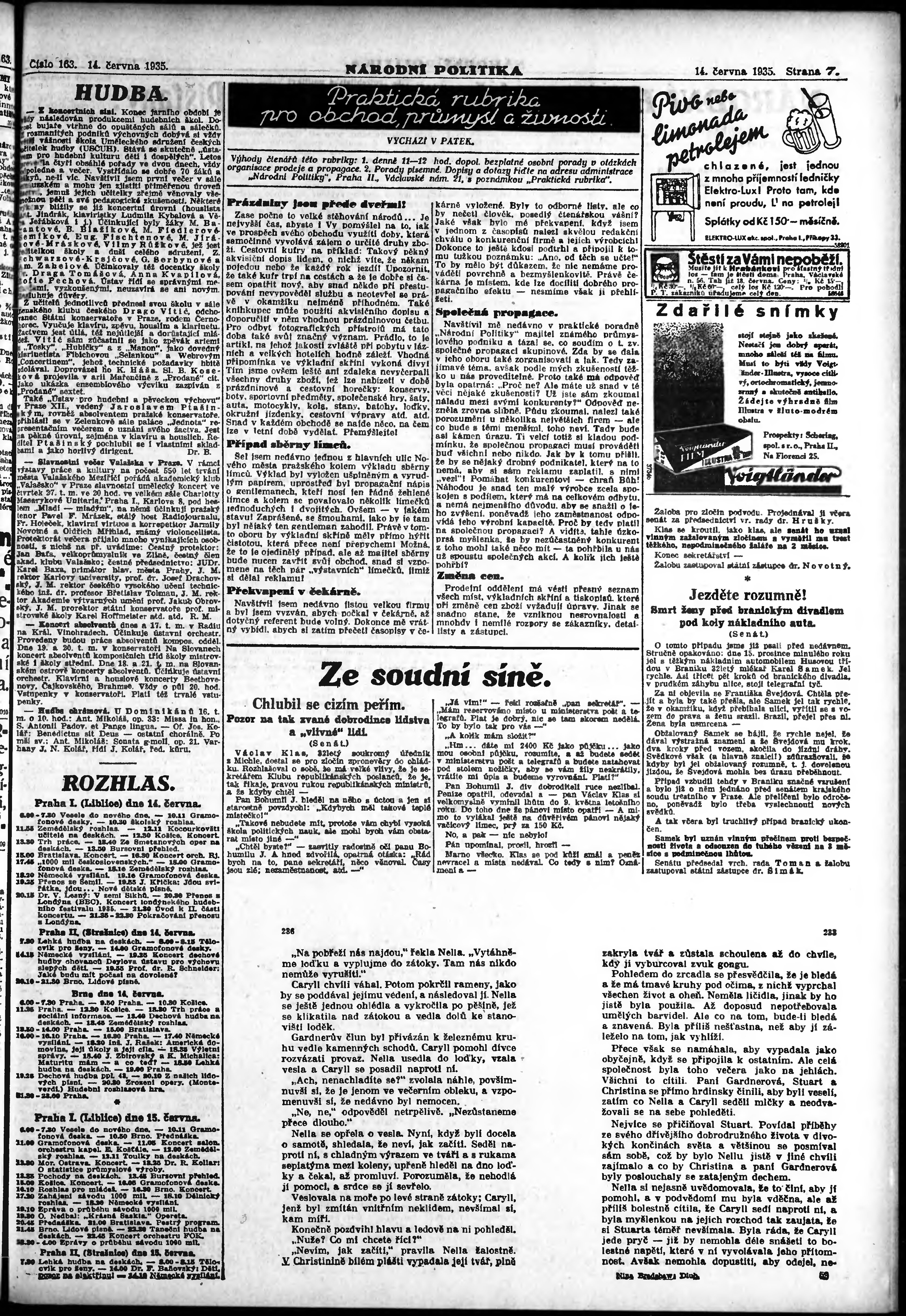 * Datum vydání výtisku: 14.6.1935 Číslo výtisku: 163 Poznámky k výtisku: ranní vydání; vydání pro Prahu;