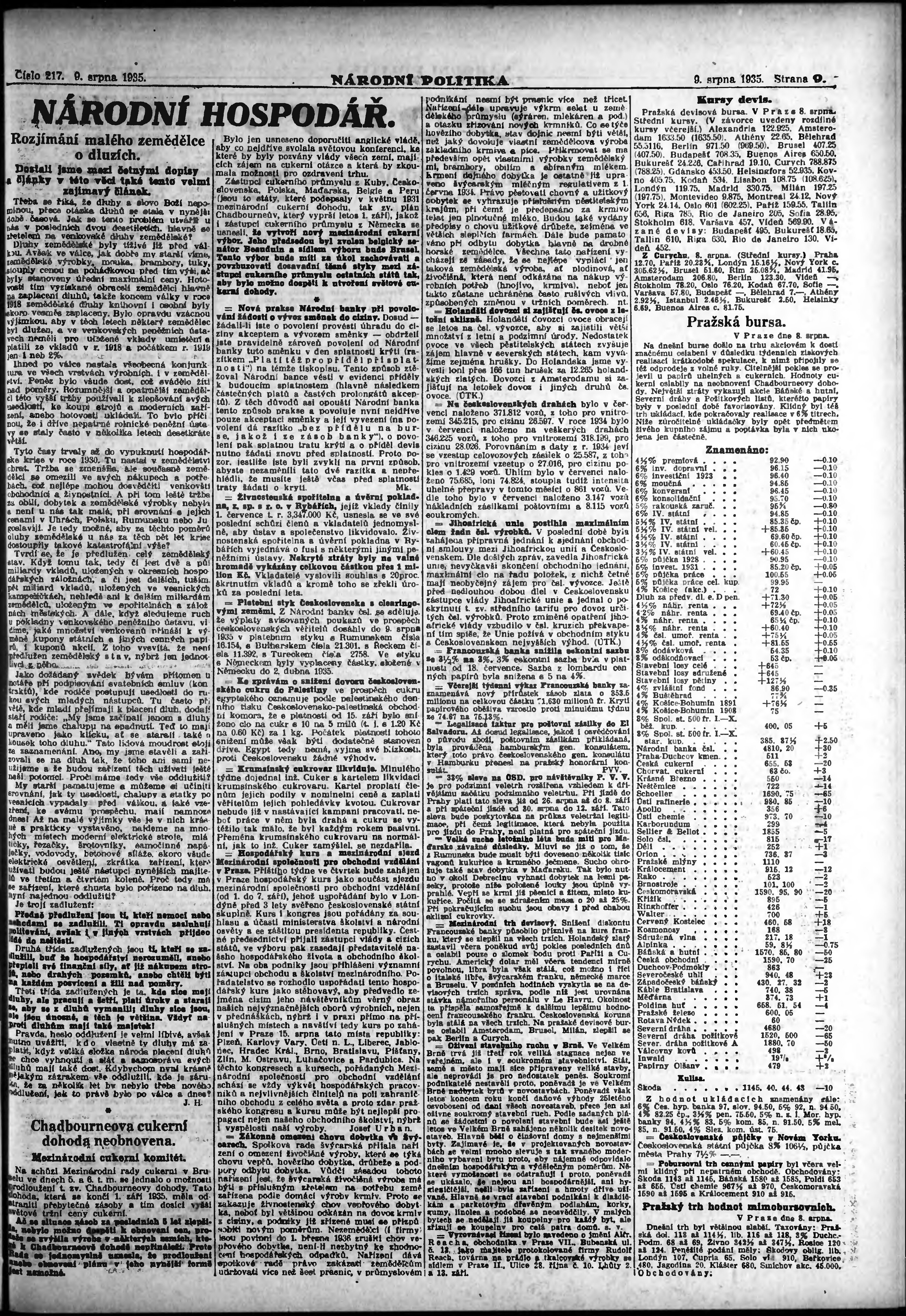 * Datum vydání výtisku: 9.8.1935 Číslo výtisku: 217 Poznámky k výtisku: ranní vydání; vydání pro Prahu;